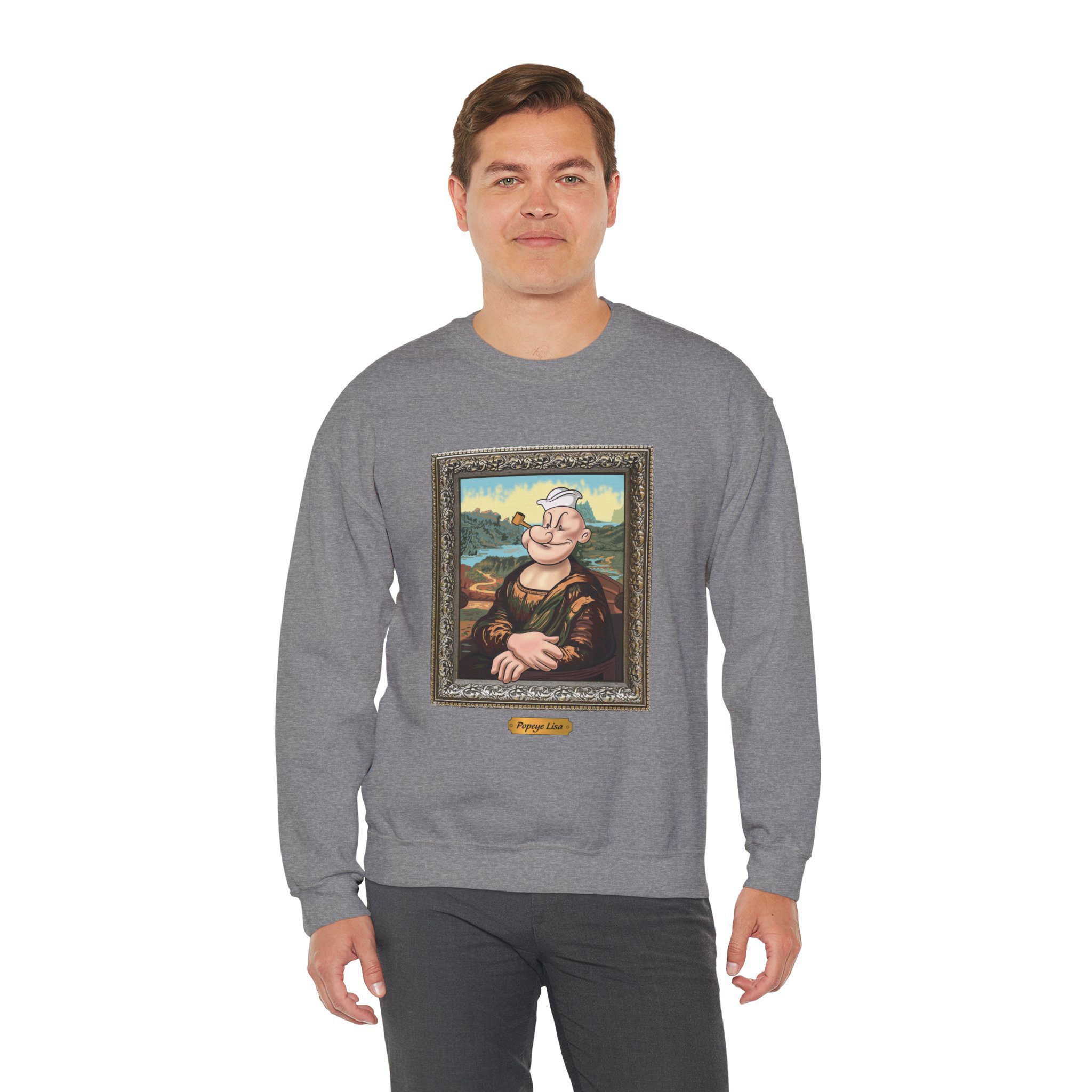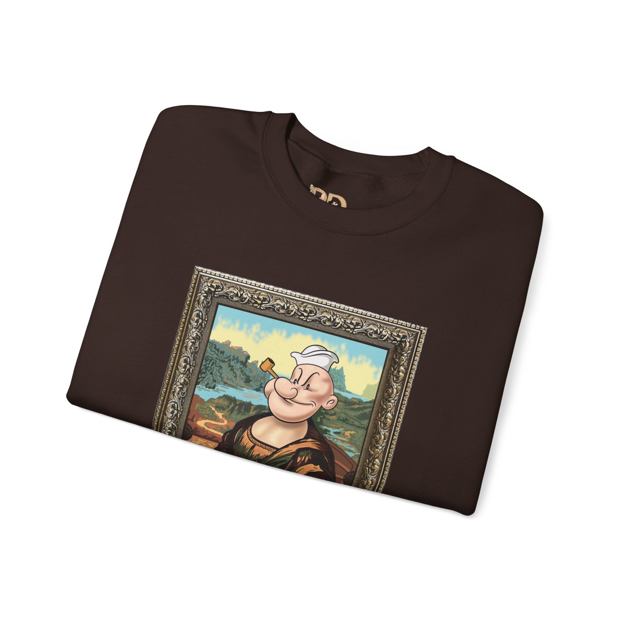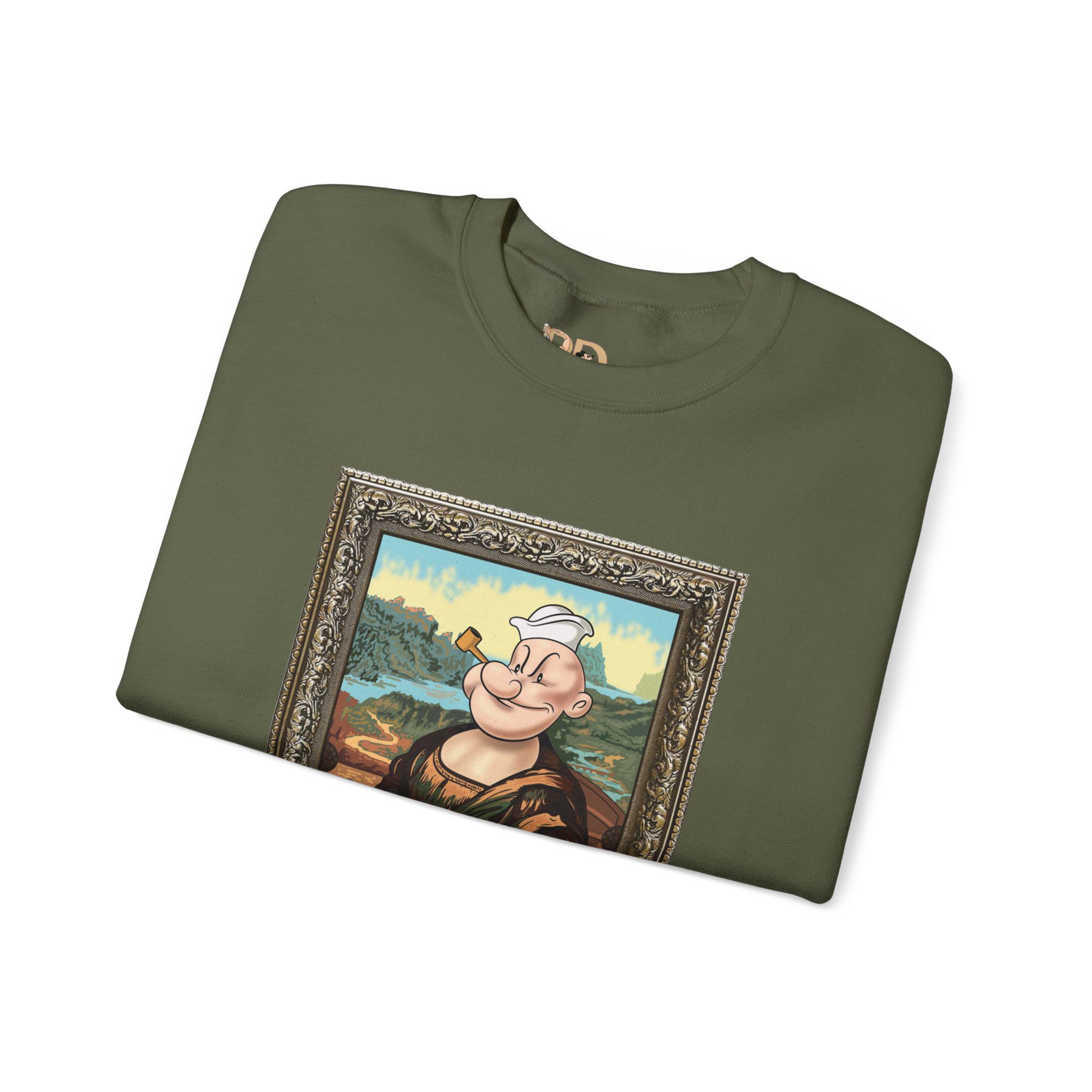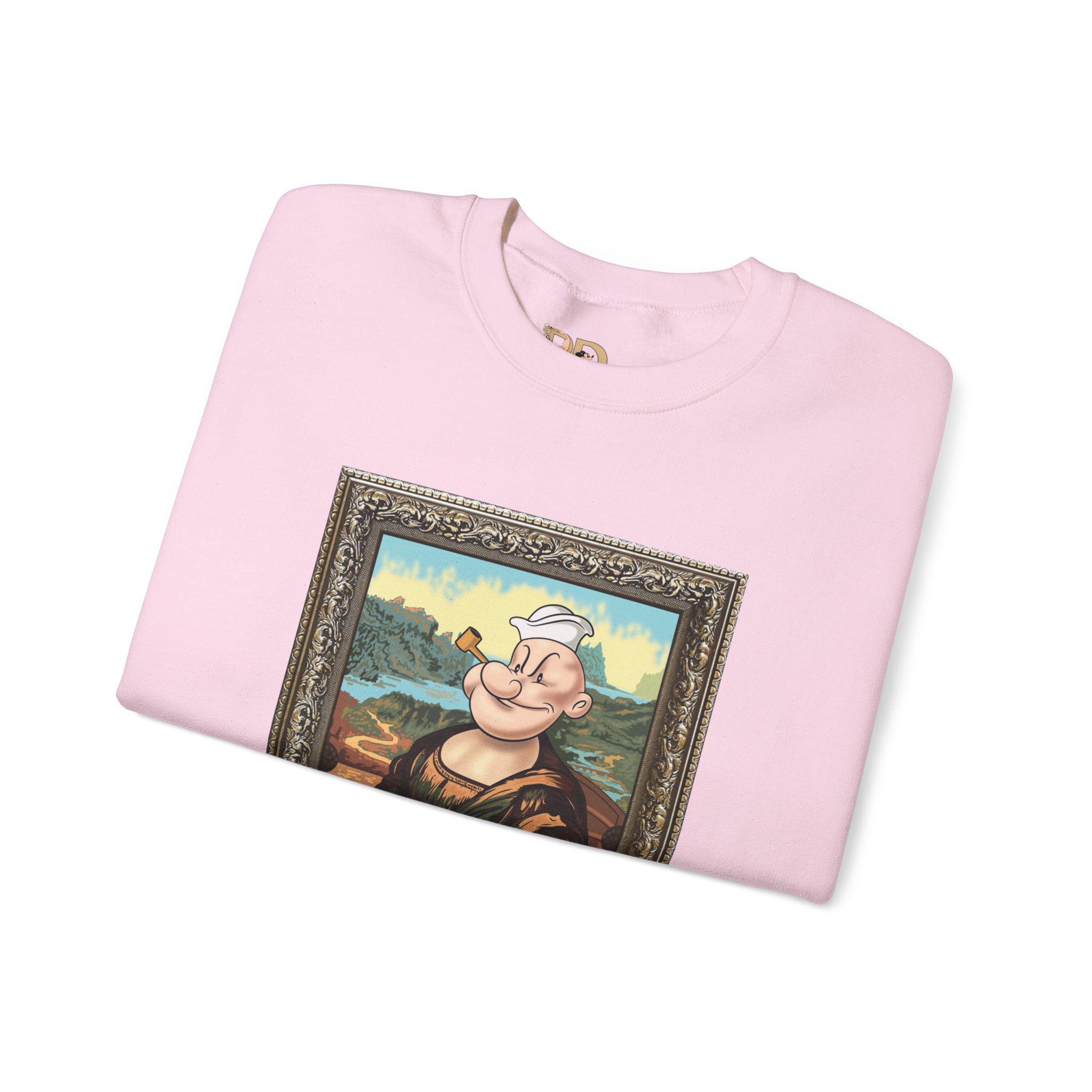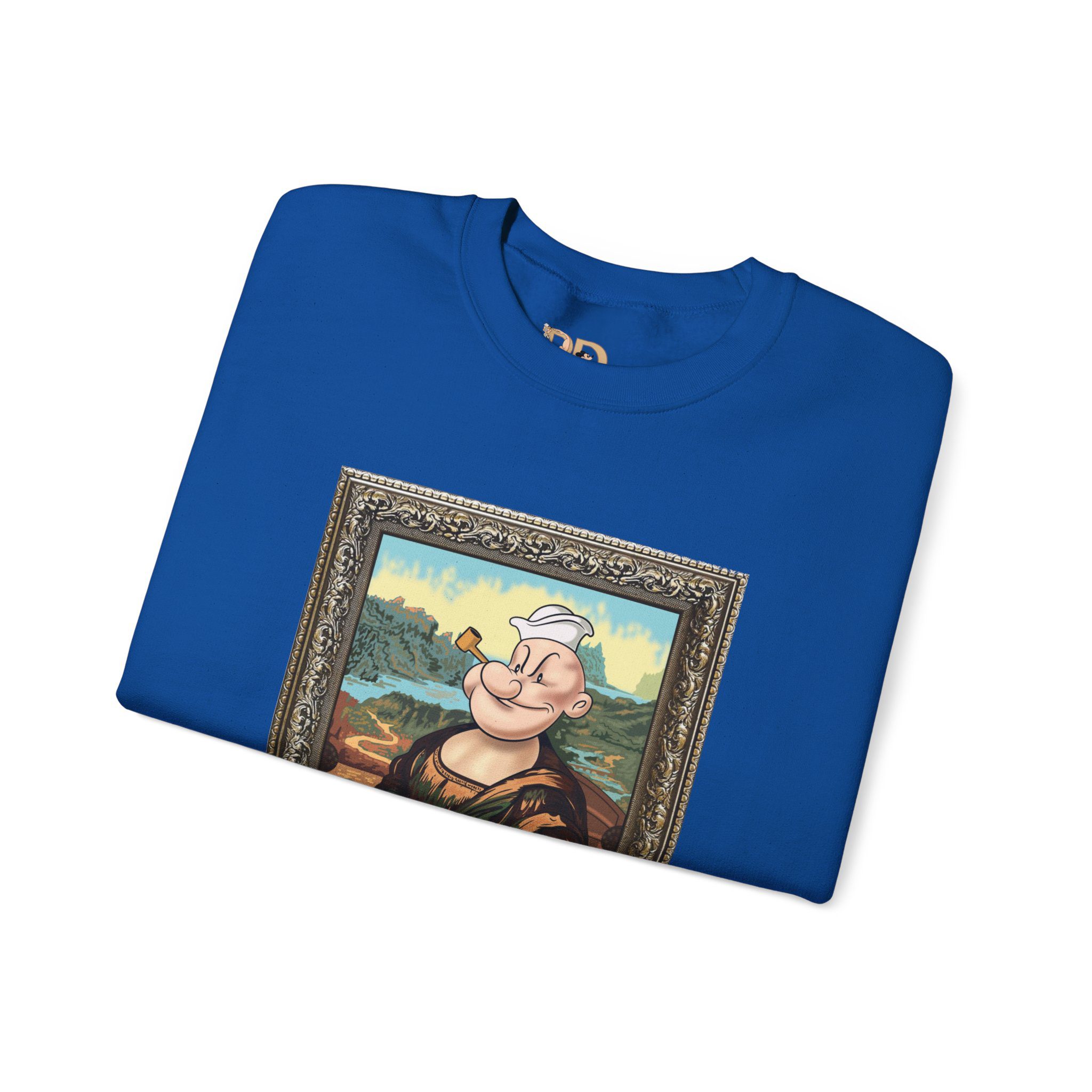 This sweatshirt reworks refined portrait tradition through the lens of raw confidence and playful strength. A rugged sailor archetype steps into an elegant, museum-style composition, turning discipline and decorum into attitude and charm.