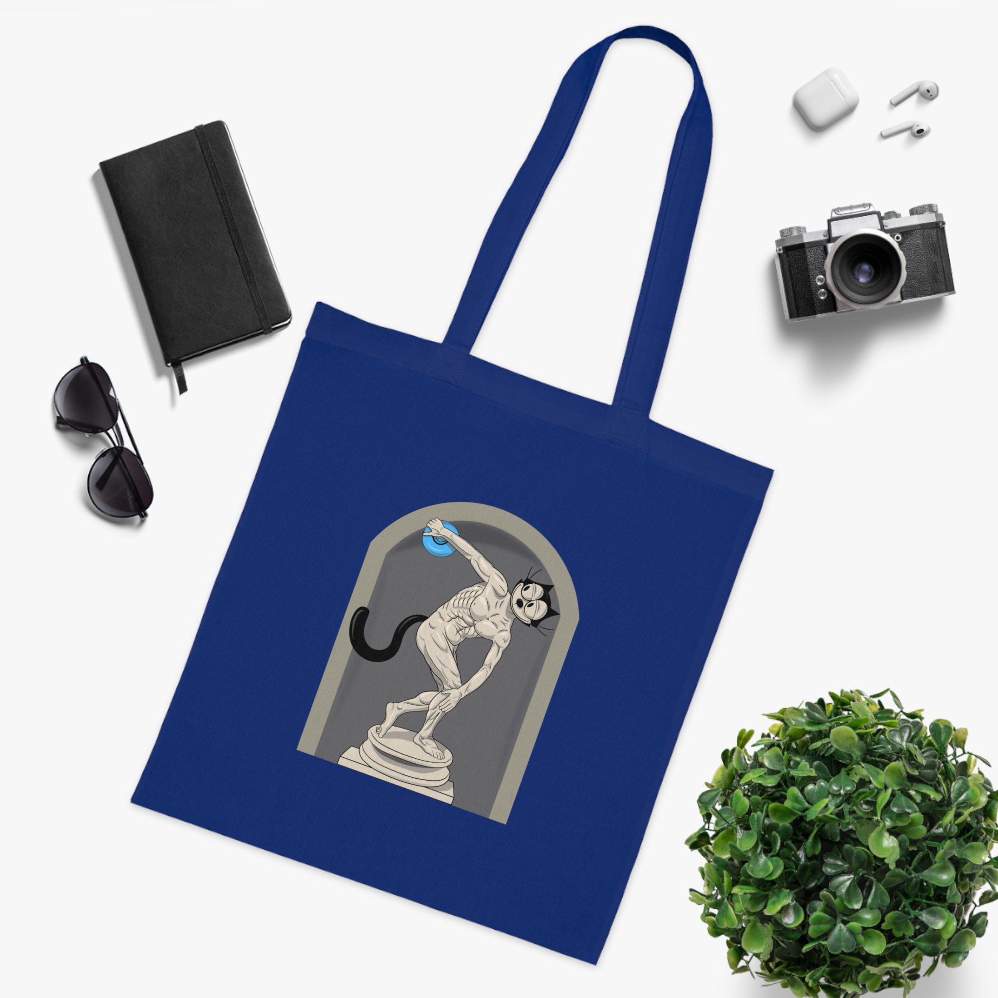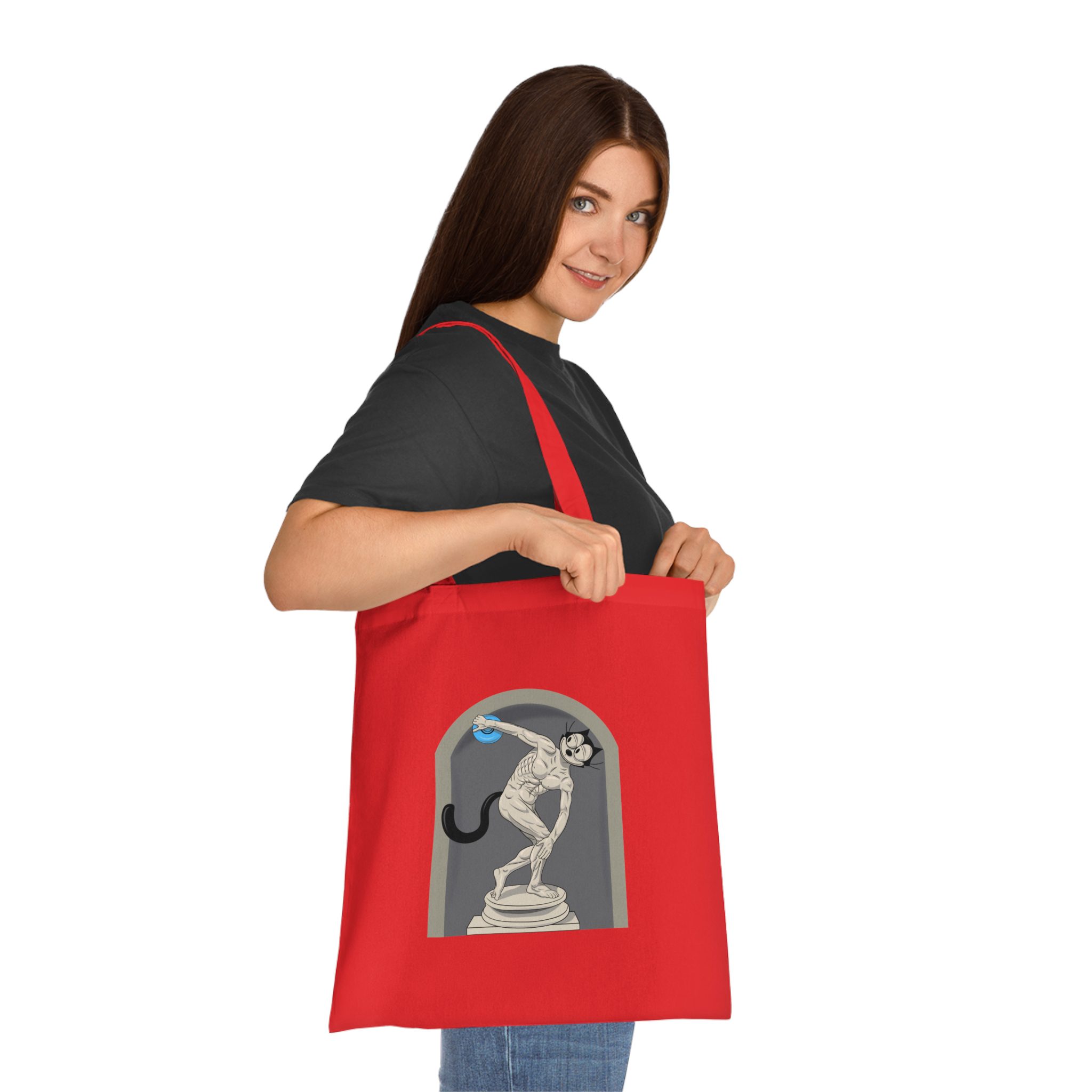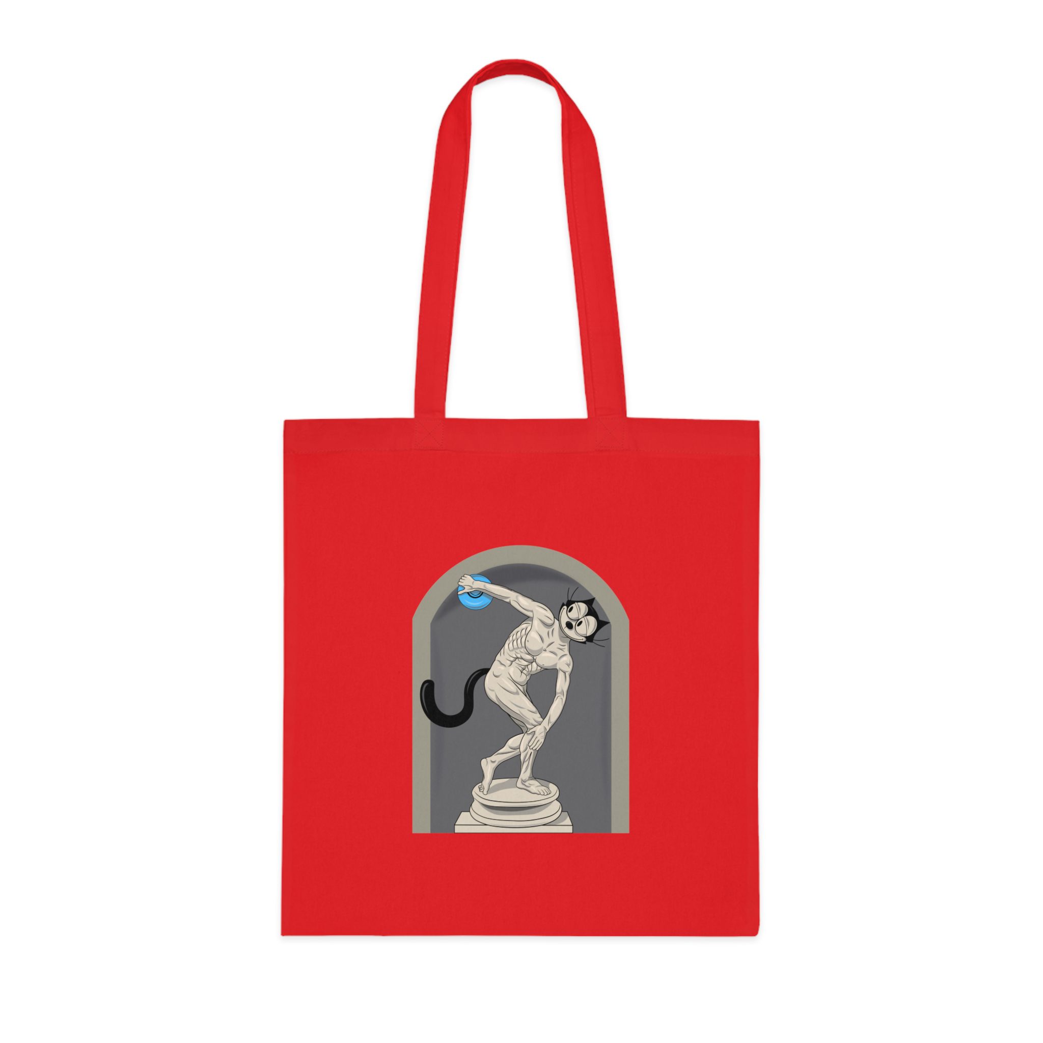 This artwork reimagines the iconic ancient Discobolus pose through a playful illustrated cat character. Classical sculpture aesthetics meet expressive cartoon form, creating a visual contrast between marble-like discipline and animated charm. The result feels both timeless and humorous.