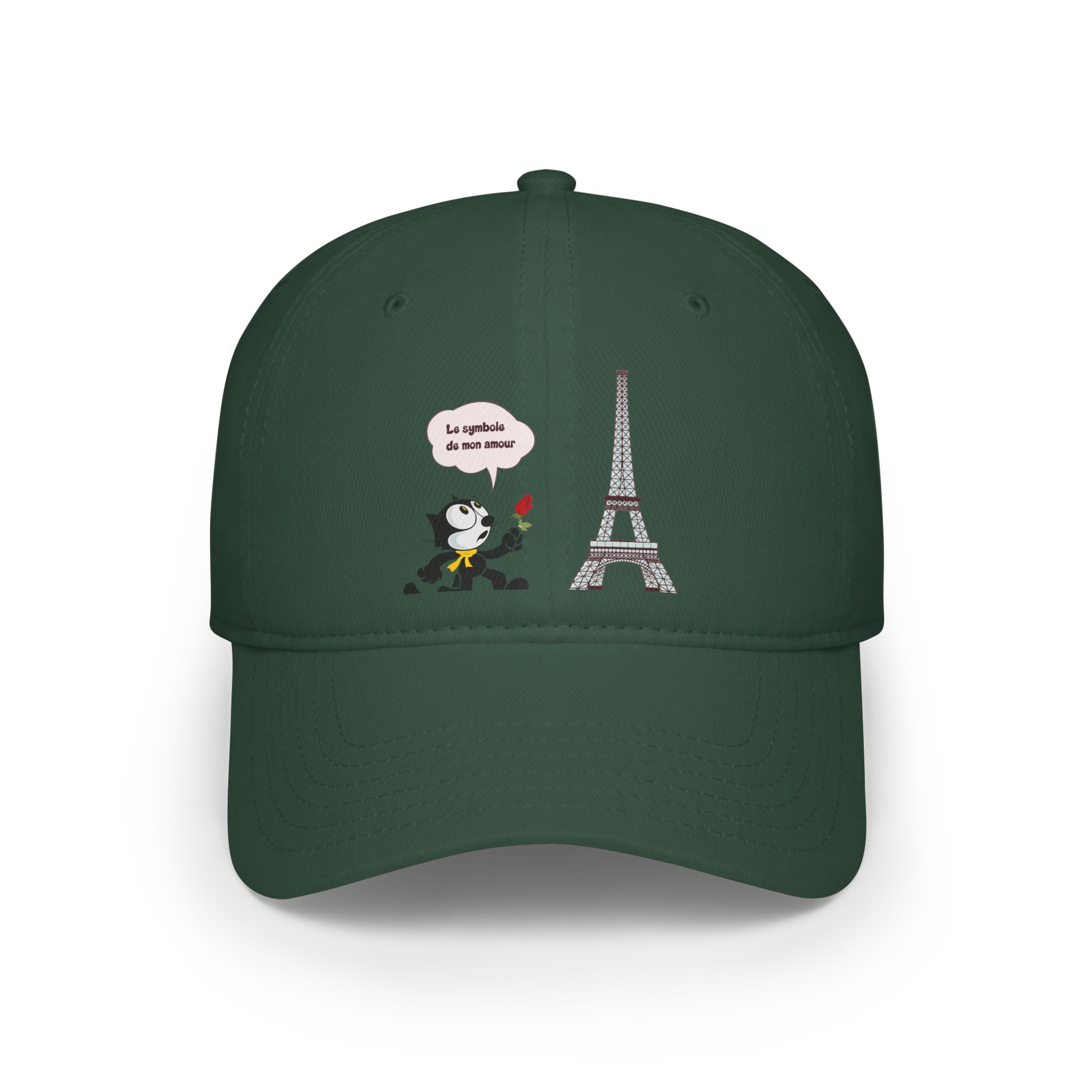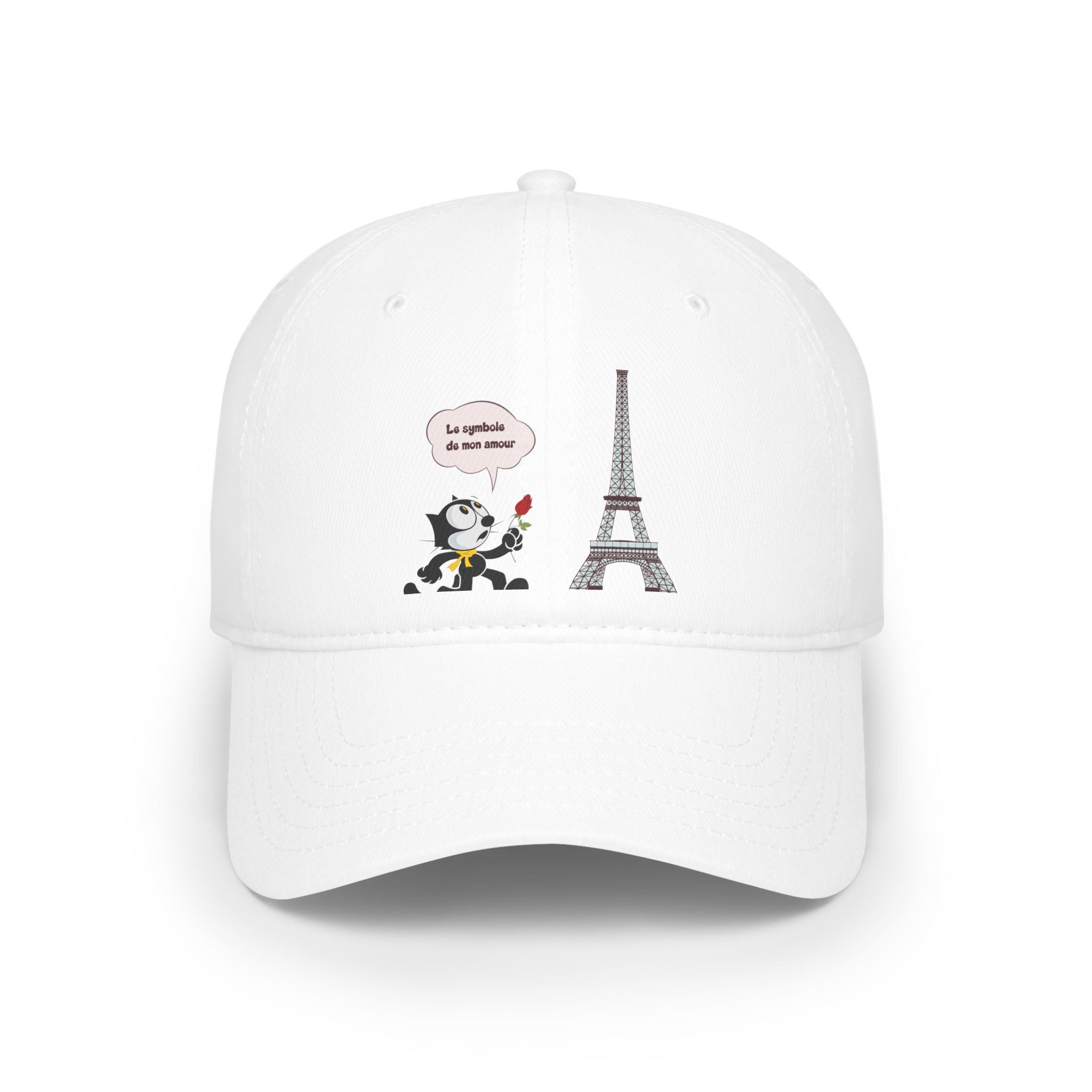 This cap captures a romantic, retro-inspired scene where a Classic Animation Cat stands against a Parisian backdrop. With a rose in hand and timeless city charm in the background, the illustration blends elegance, nostalgia, and gentle drama into a visually expressive moment.