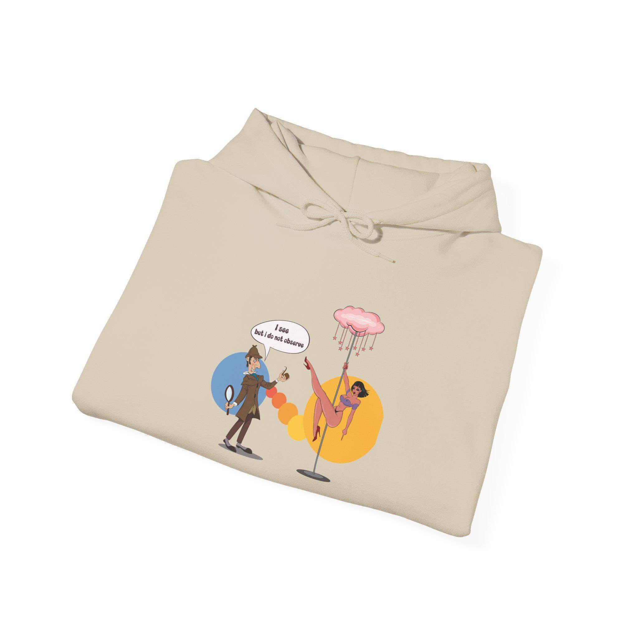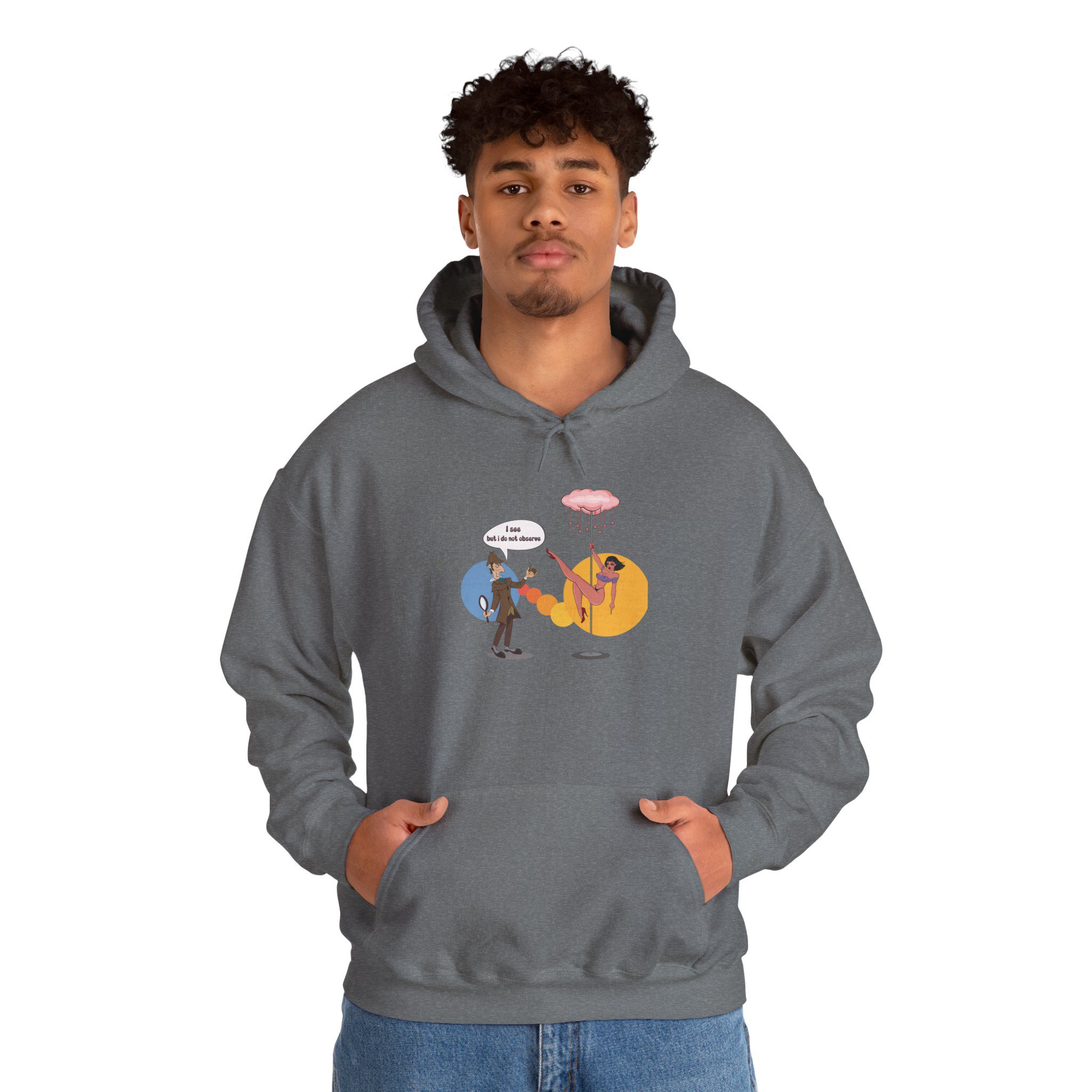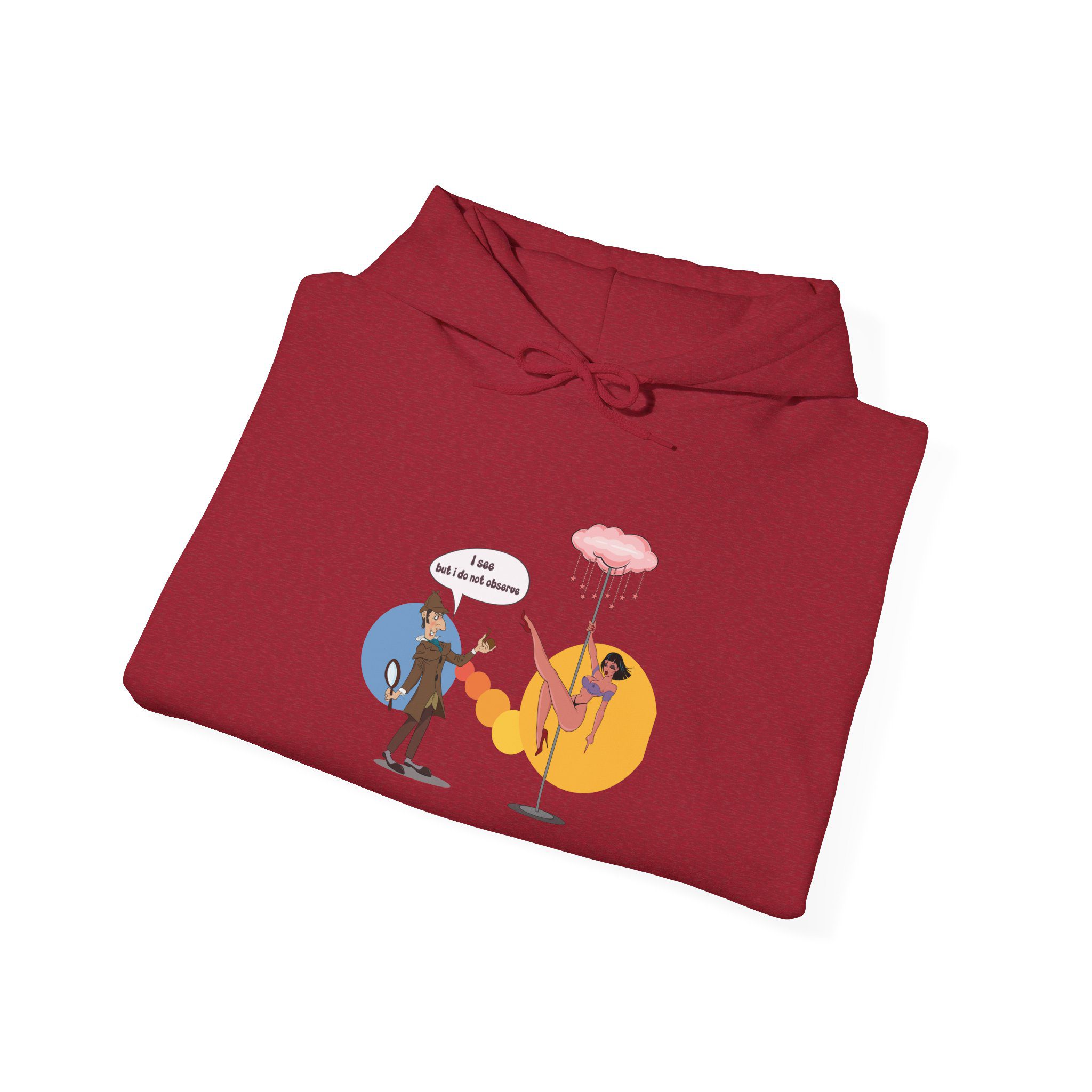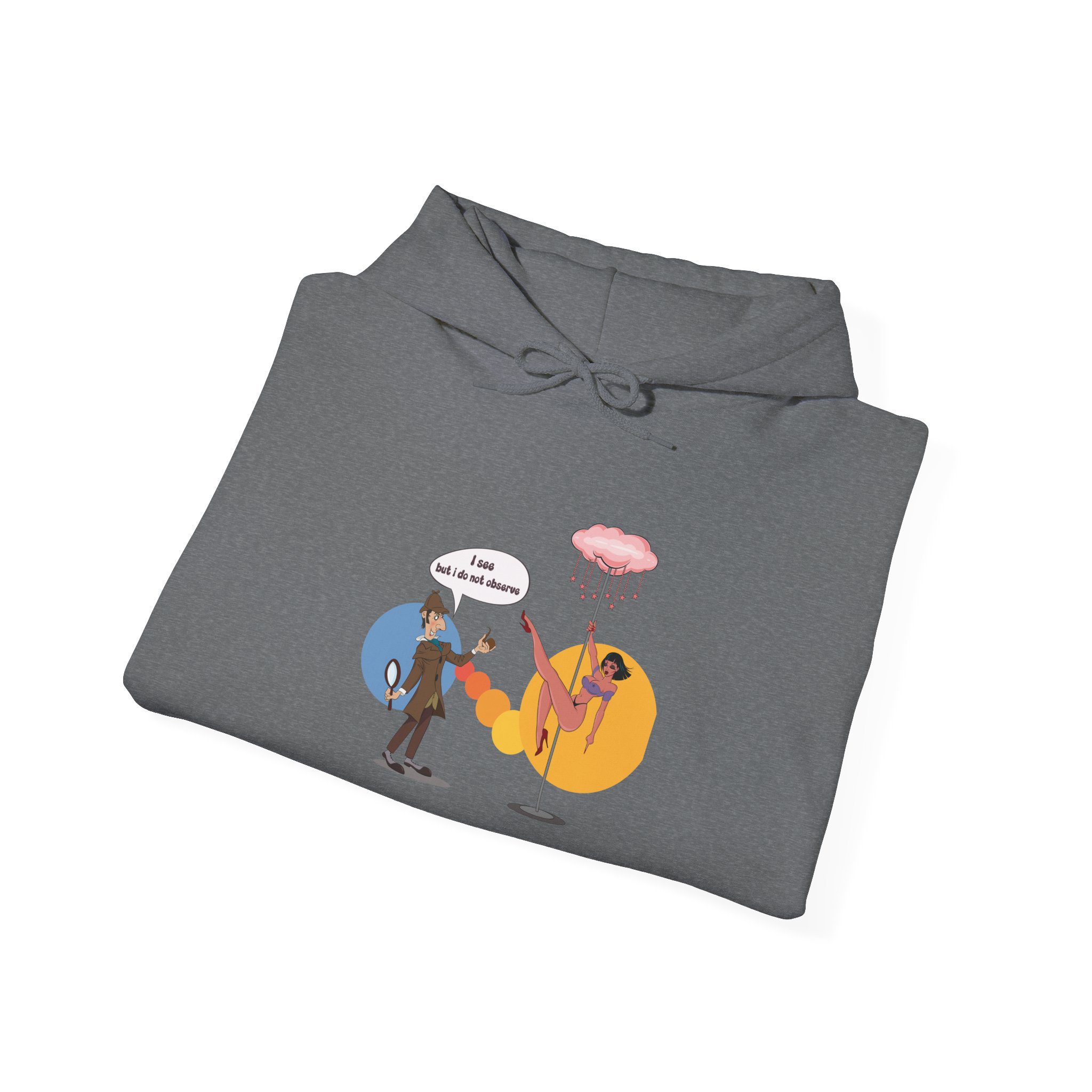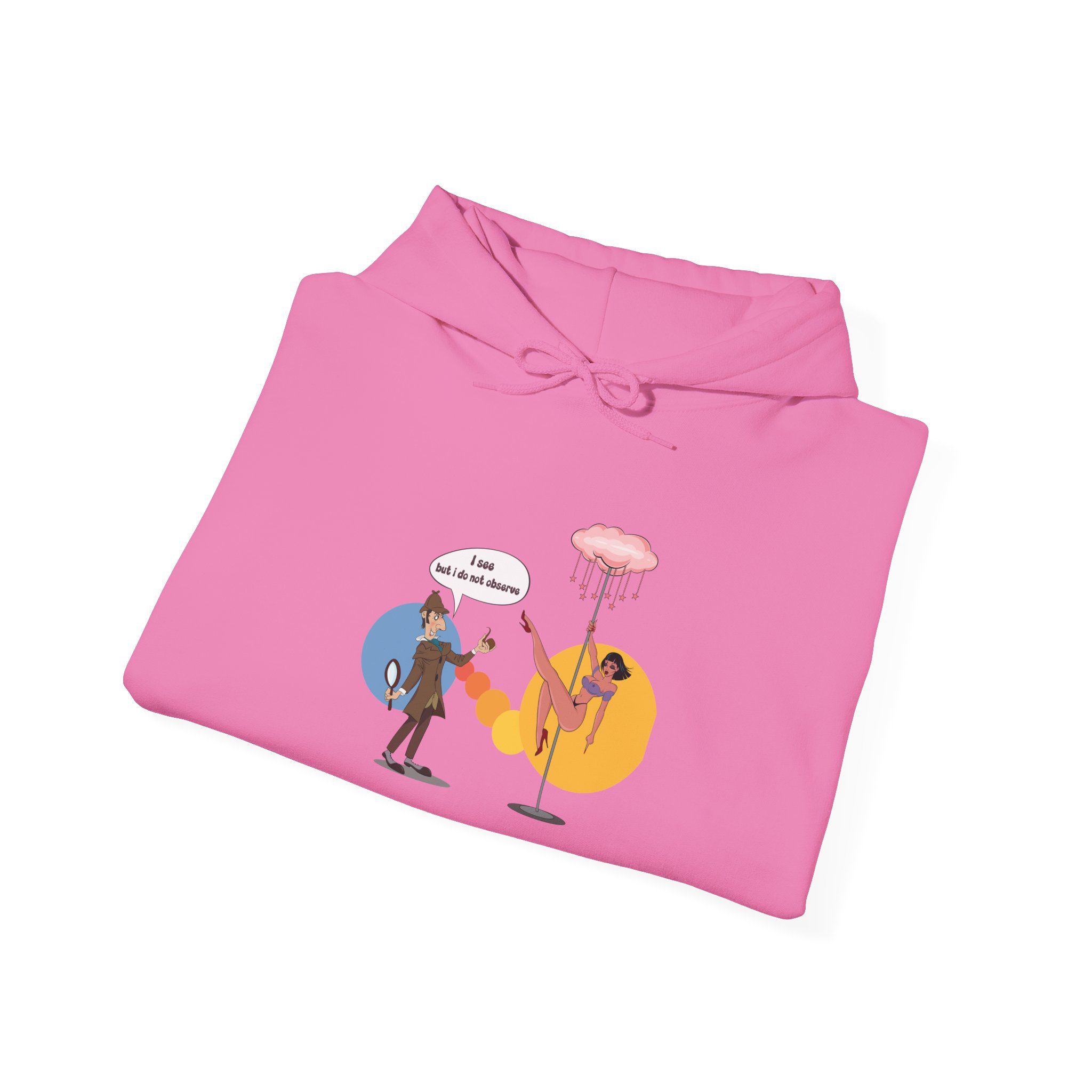 This hoodie presents a classic consulting detective placed in an entirely unexpected neon-lit lounge. Known for logic and restraint, the illustrated character finds himself surrounded by distraction, turning sharp intellect into dry, visual irony. The scene plays with contrast and surprise, making the artwork humorous without being literal.