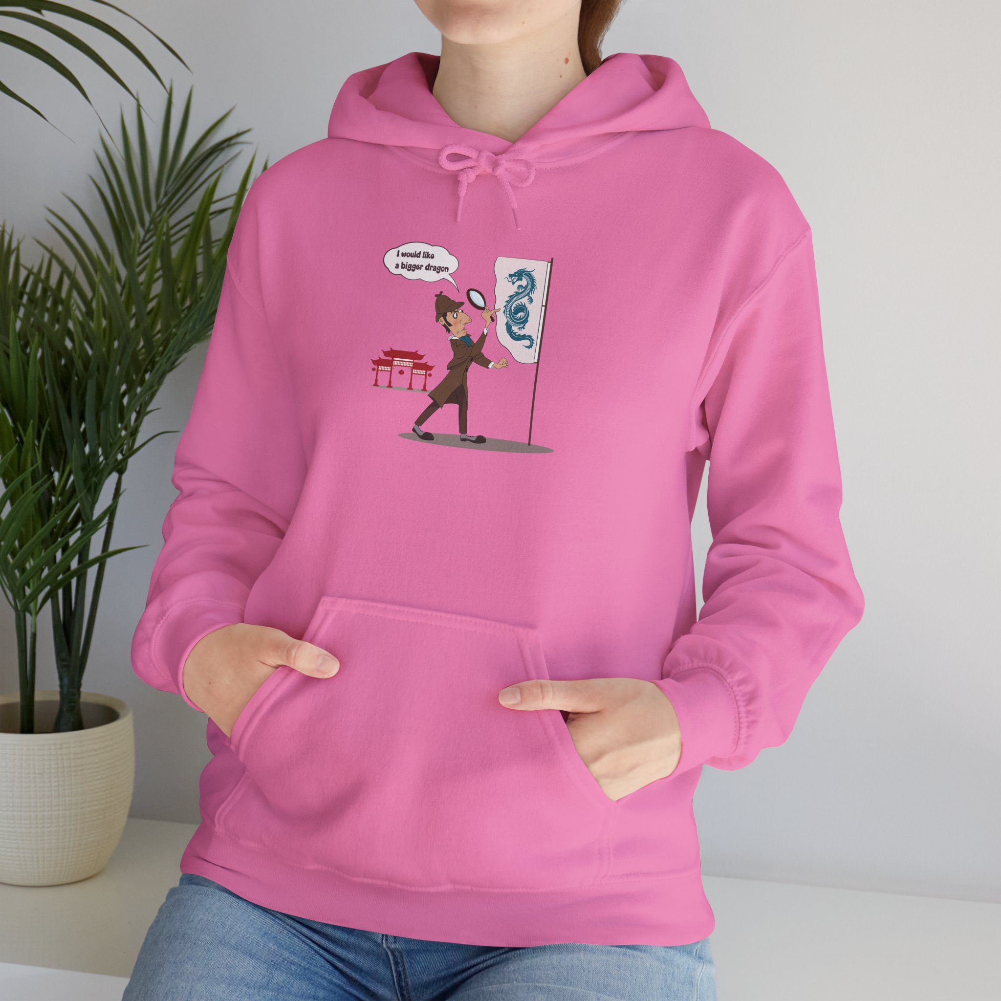 Deadpan Detective and Tiny Dragon Hoodie with Dry Fantasy Humor