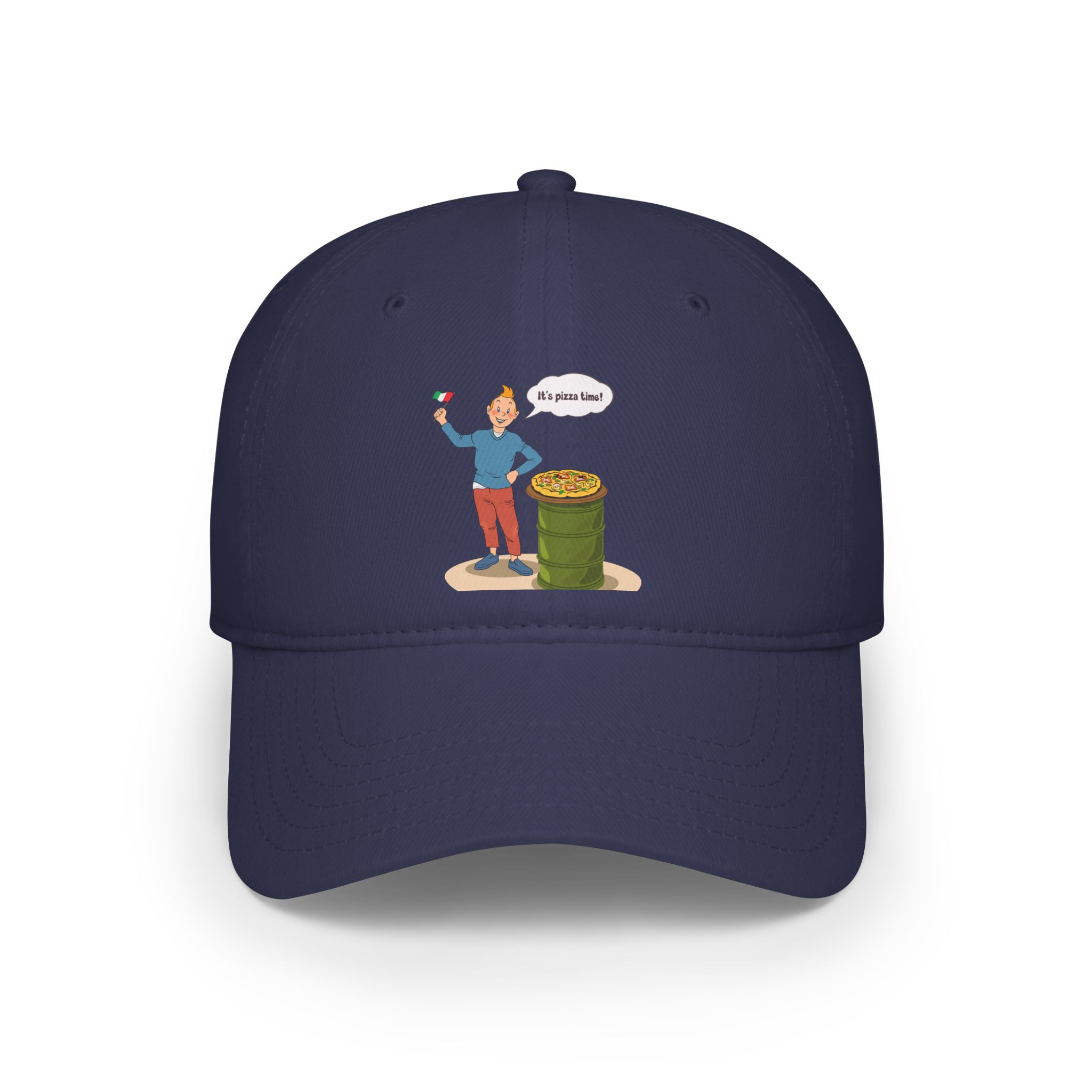 This cap delivers a warm, playful scene where a European Comic Explorer celebrates the joy of pizza. With bold, cheerful composition and a cozy food-inspired vibe, the design captures comfort, travel spirit, and everyday happiness in one expressive illustration.