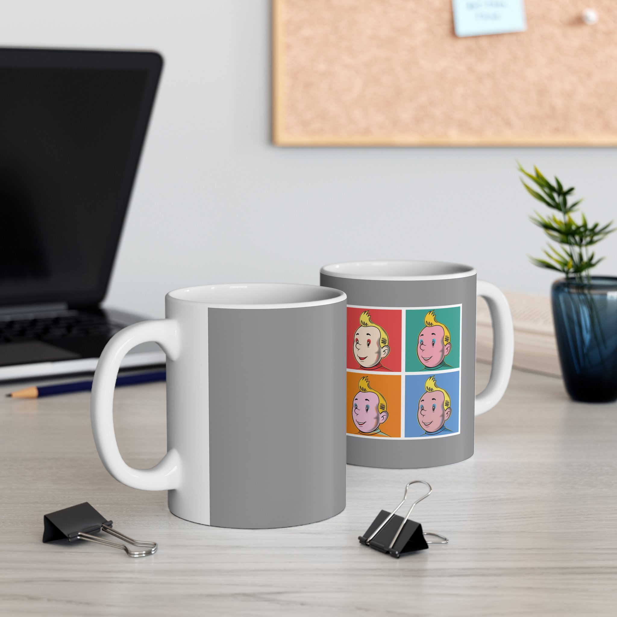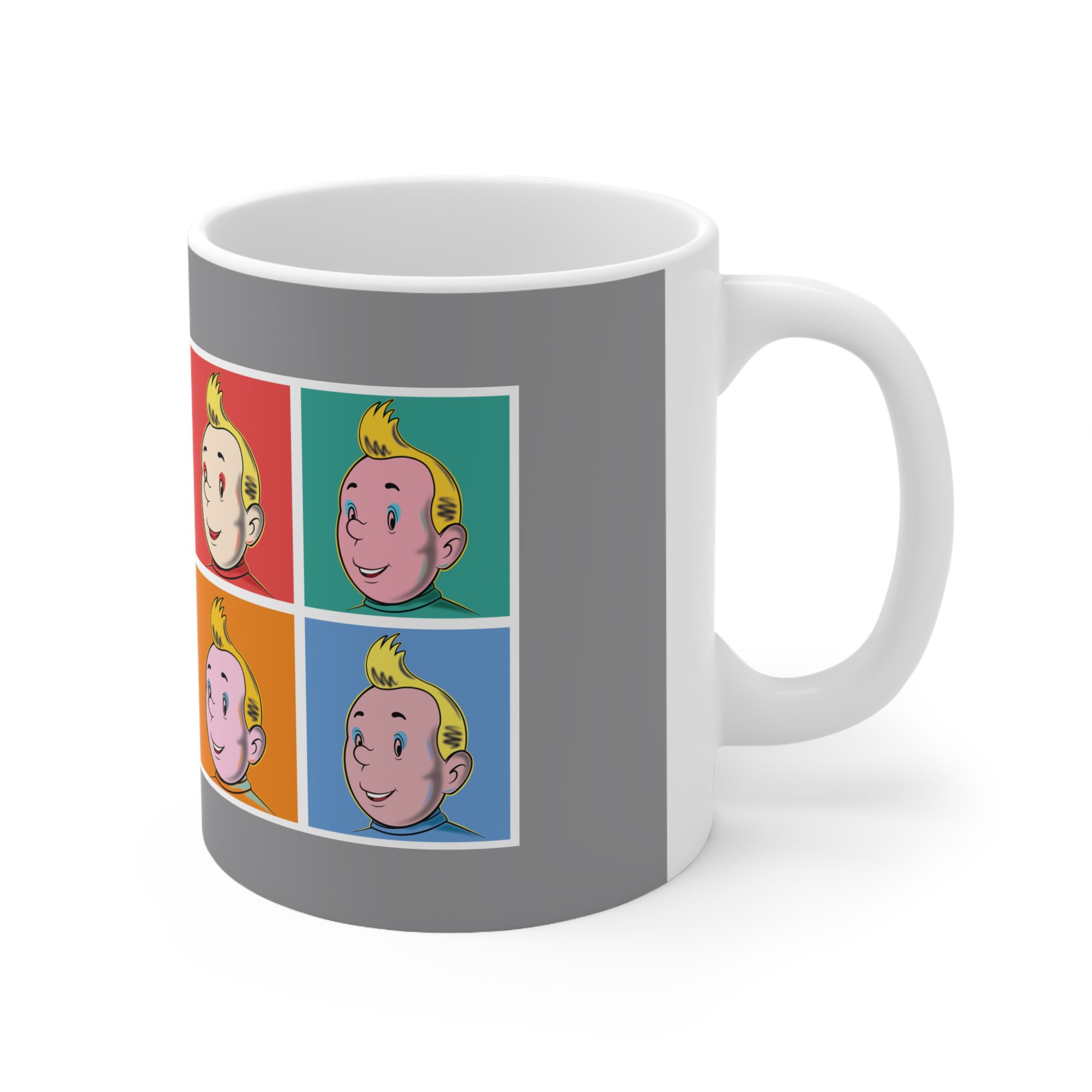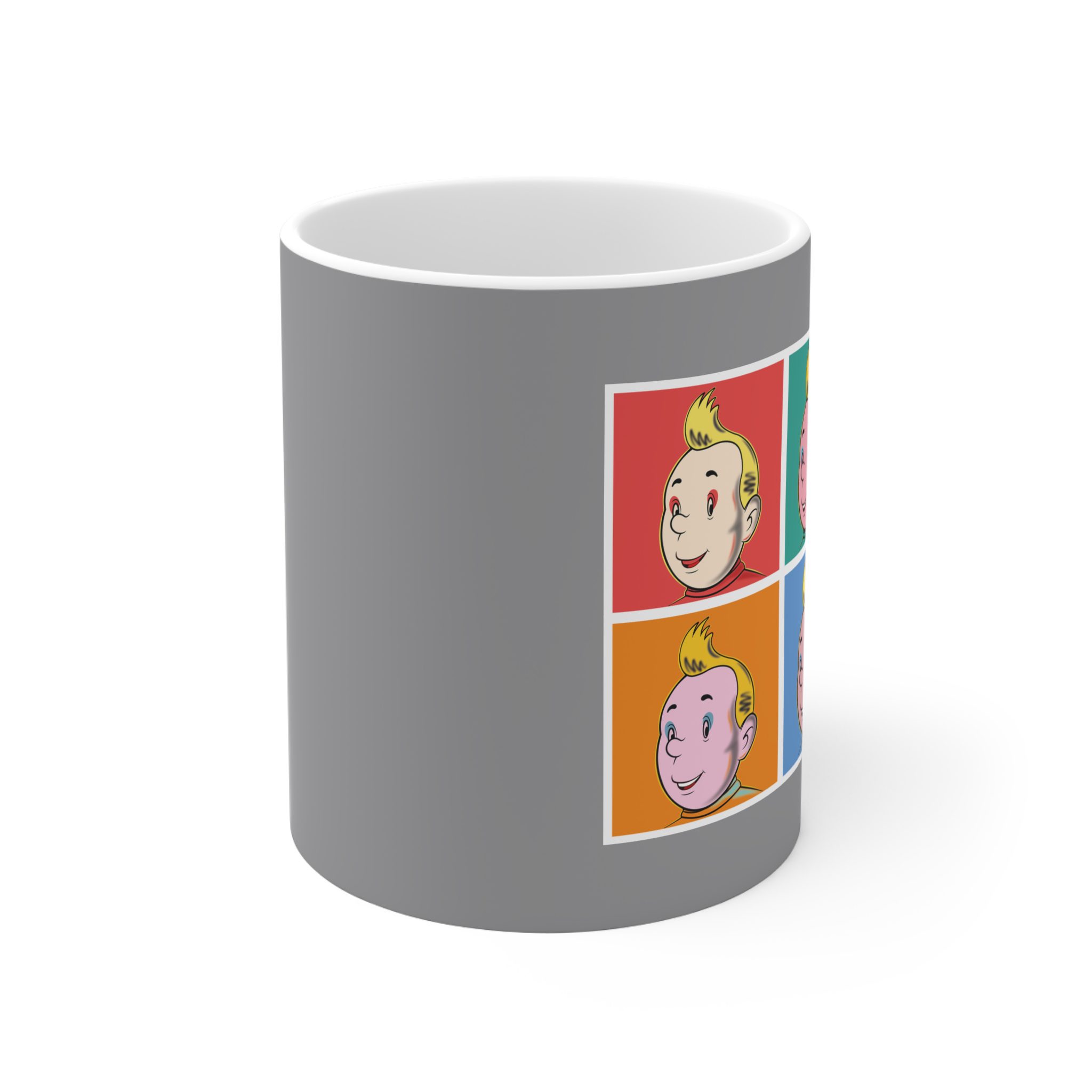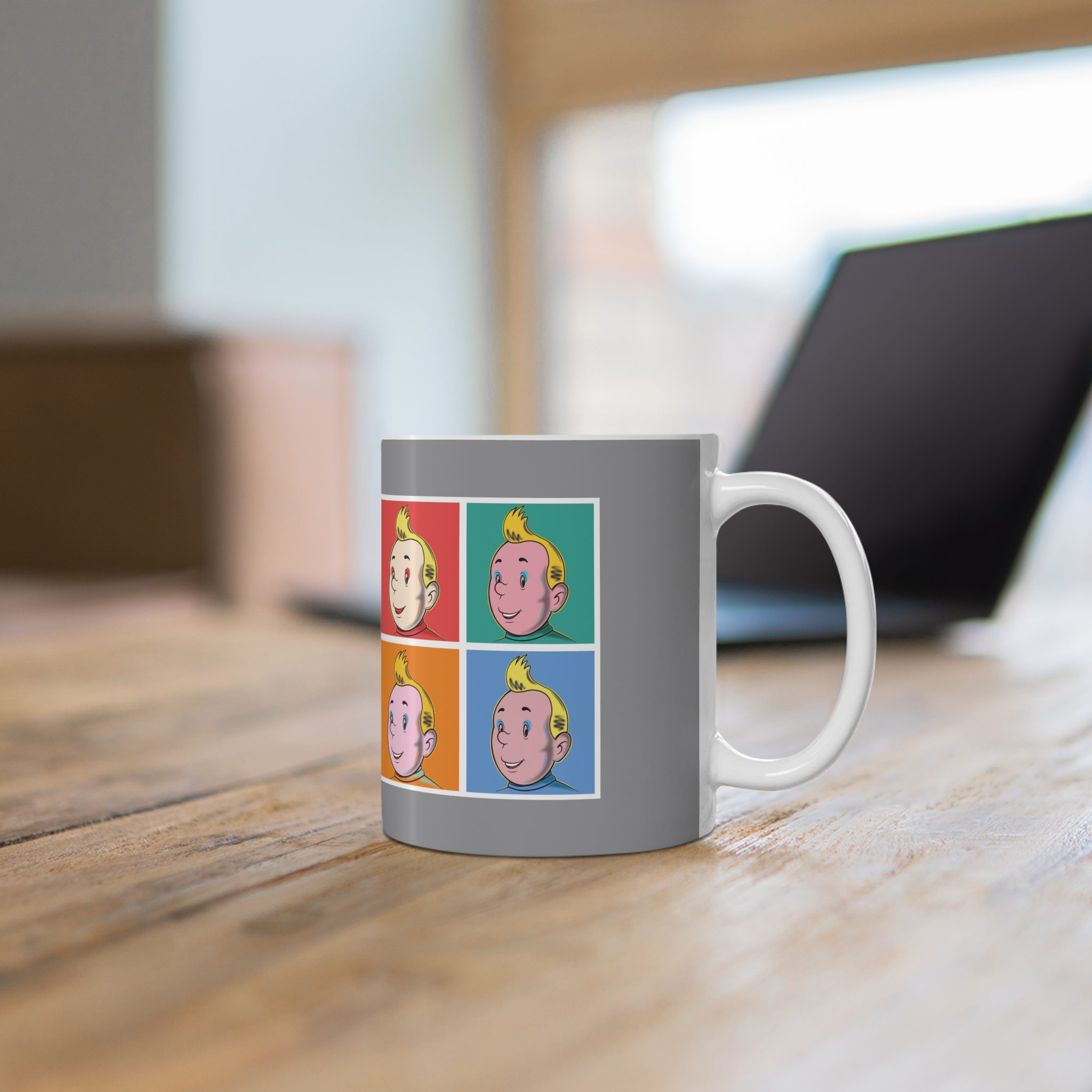 This mug reimagines a classic explorer archetype as a modern pop art symbol. Through repetition and variation, the design plays with identity, recognition, and the way familiar figures are reshaped by visual culture.