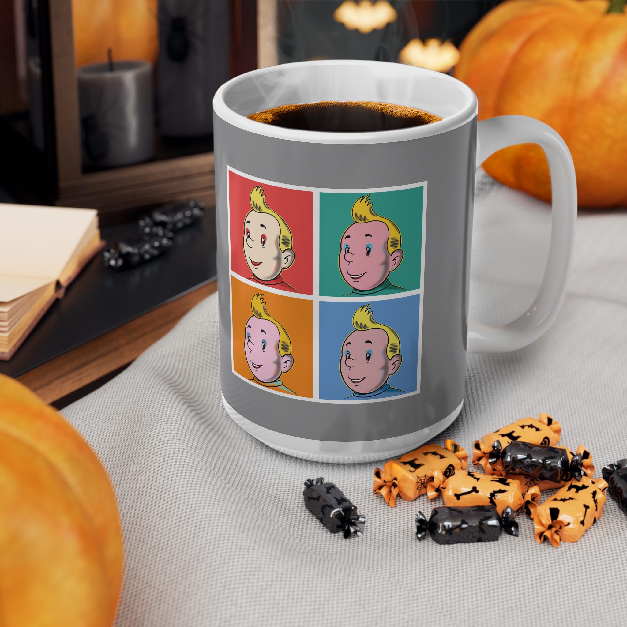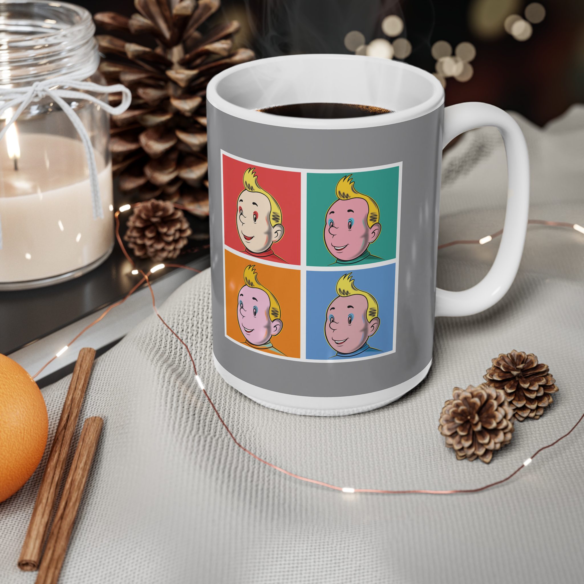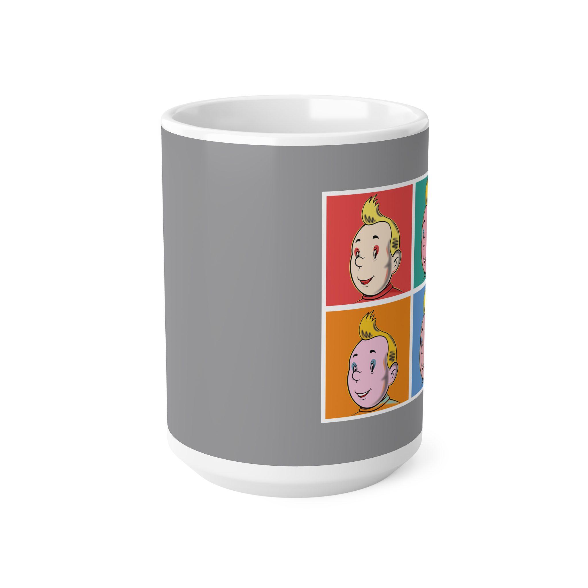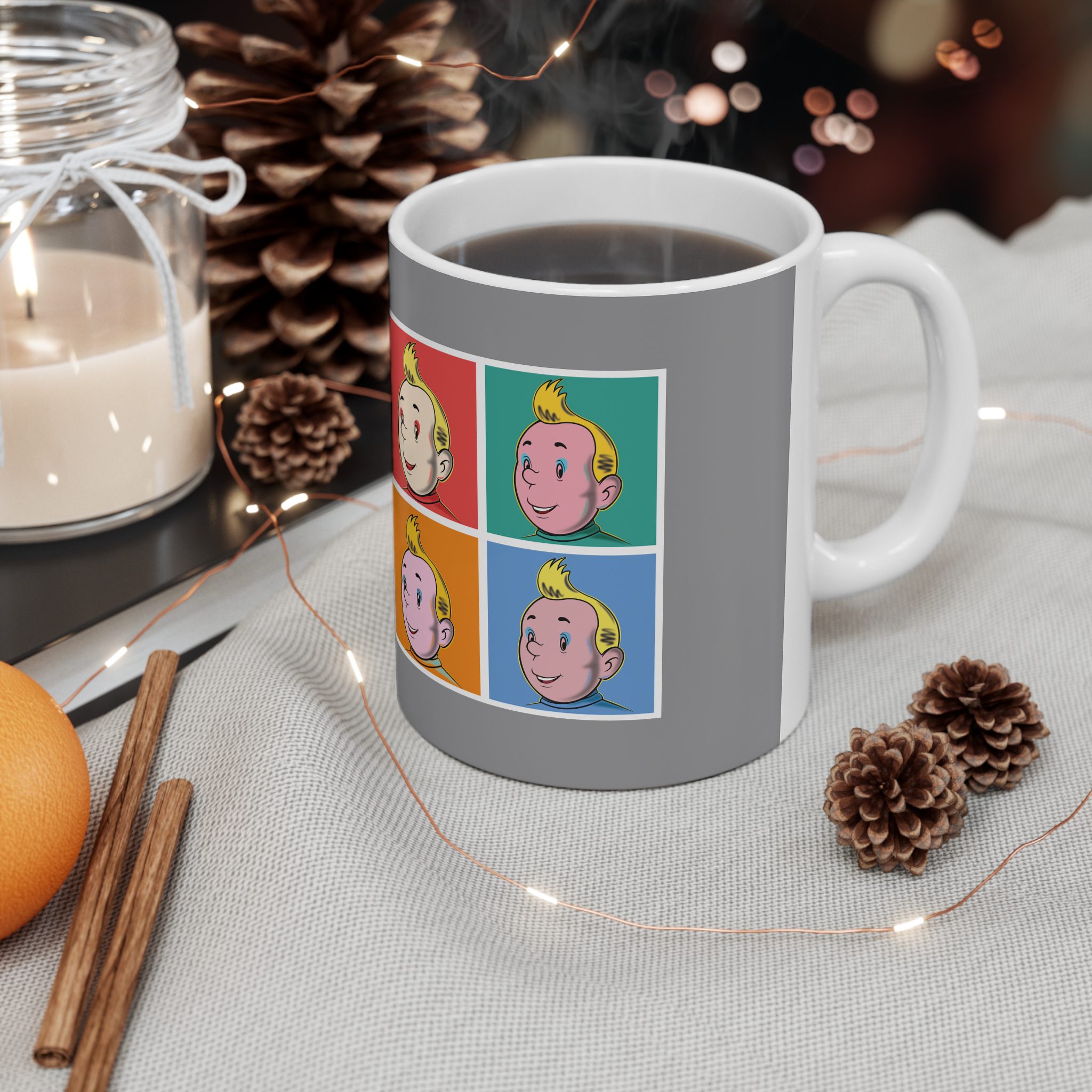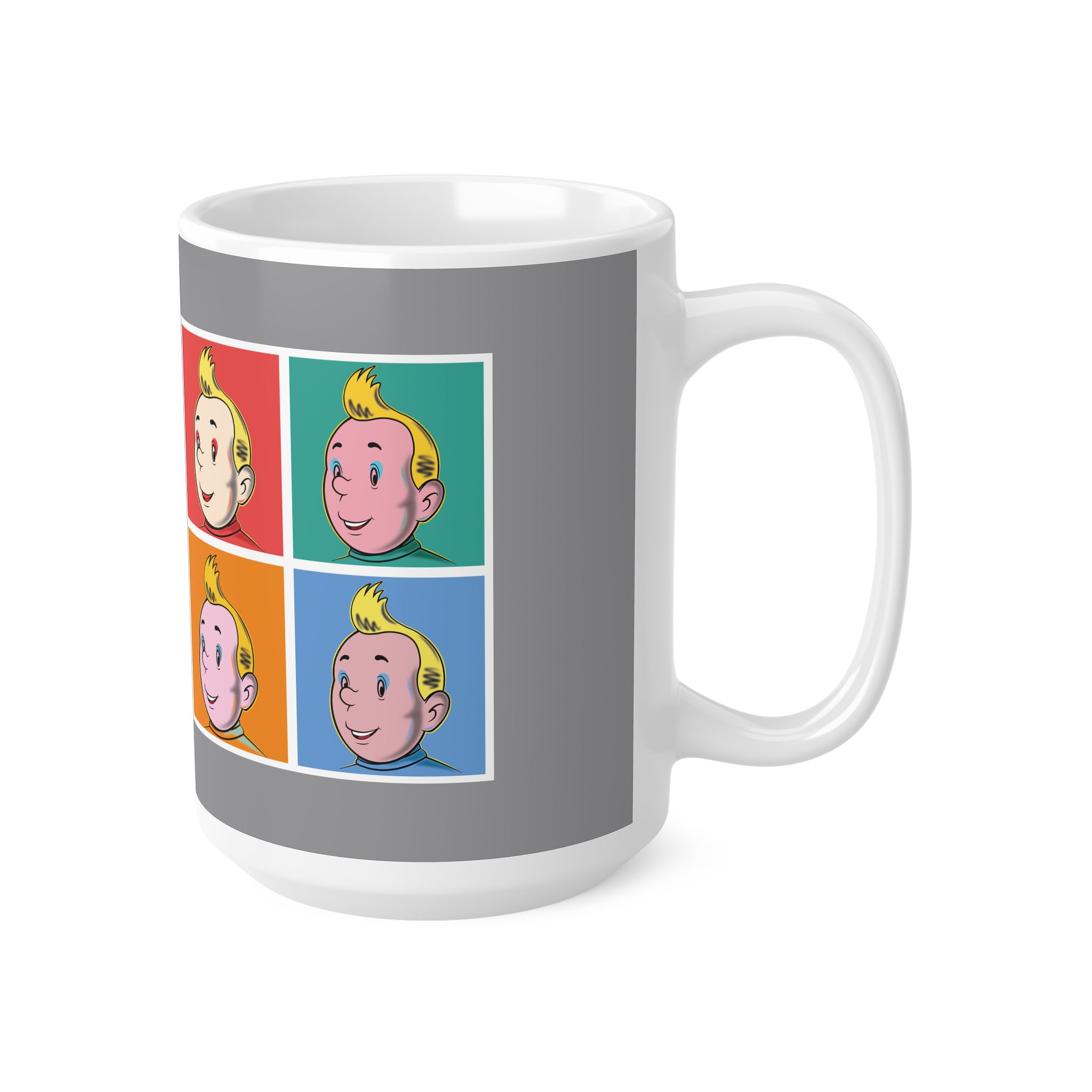 This mug reimagines a classic explorer archetype as a modern pop art symbol. Through repetition and variation, the design plays with identity, recognition, and the way familiar figures are reshaped by visual culture.