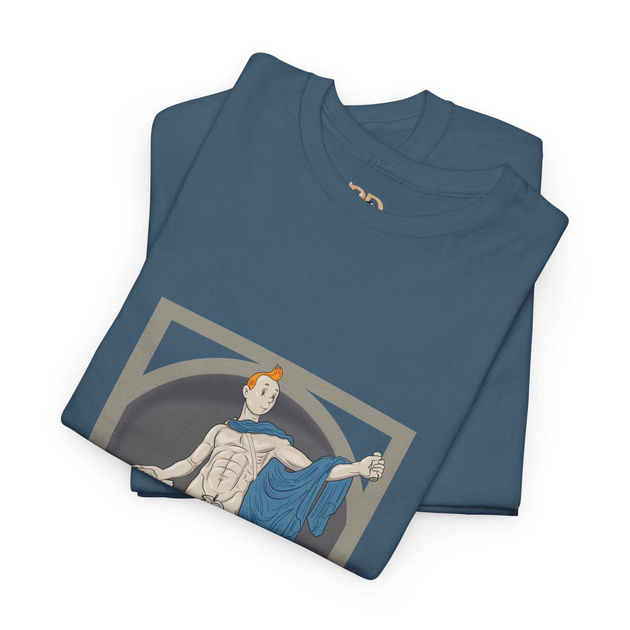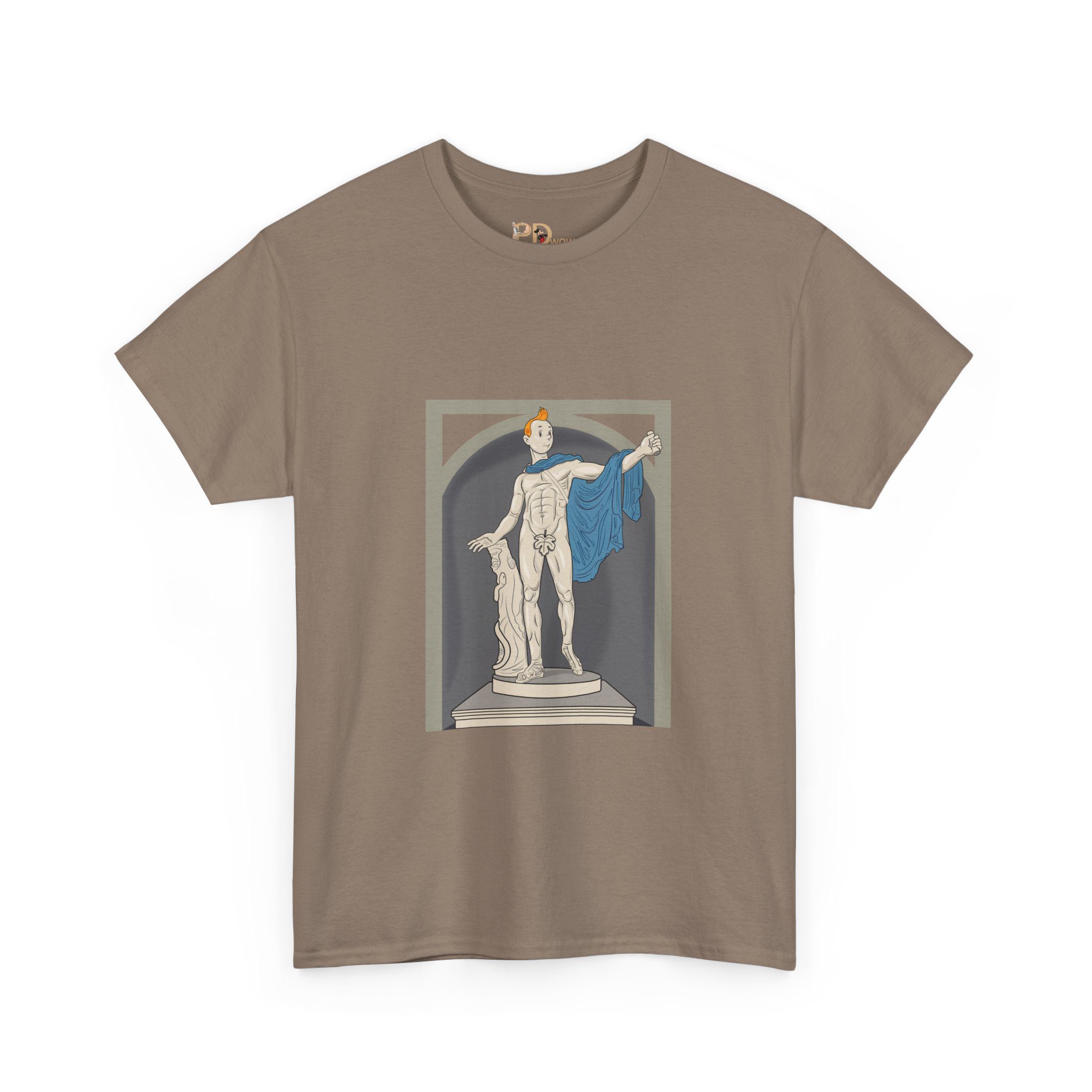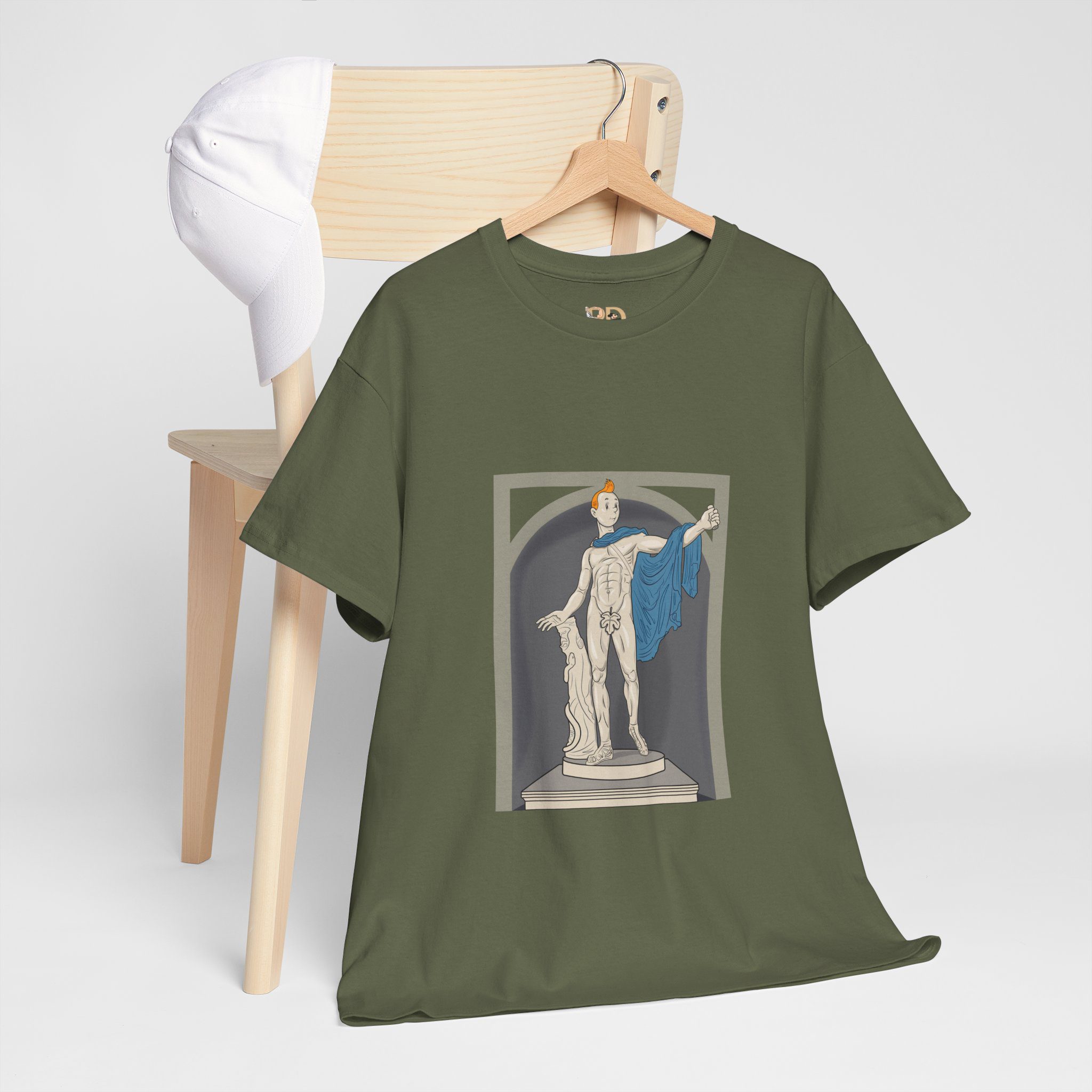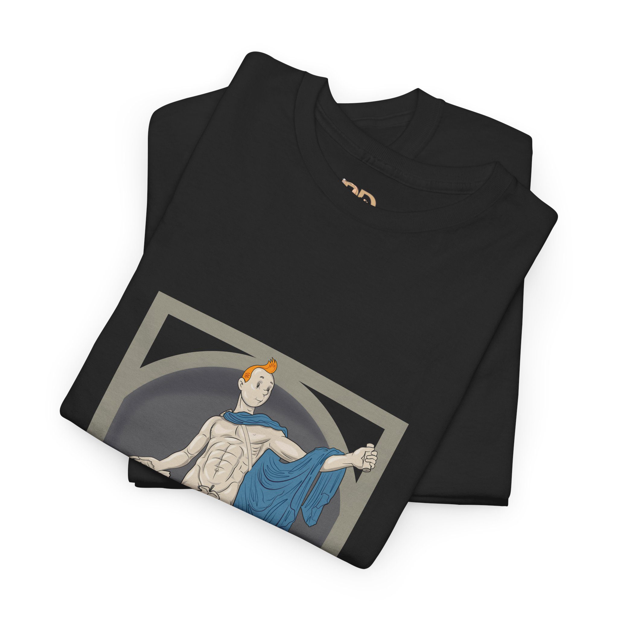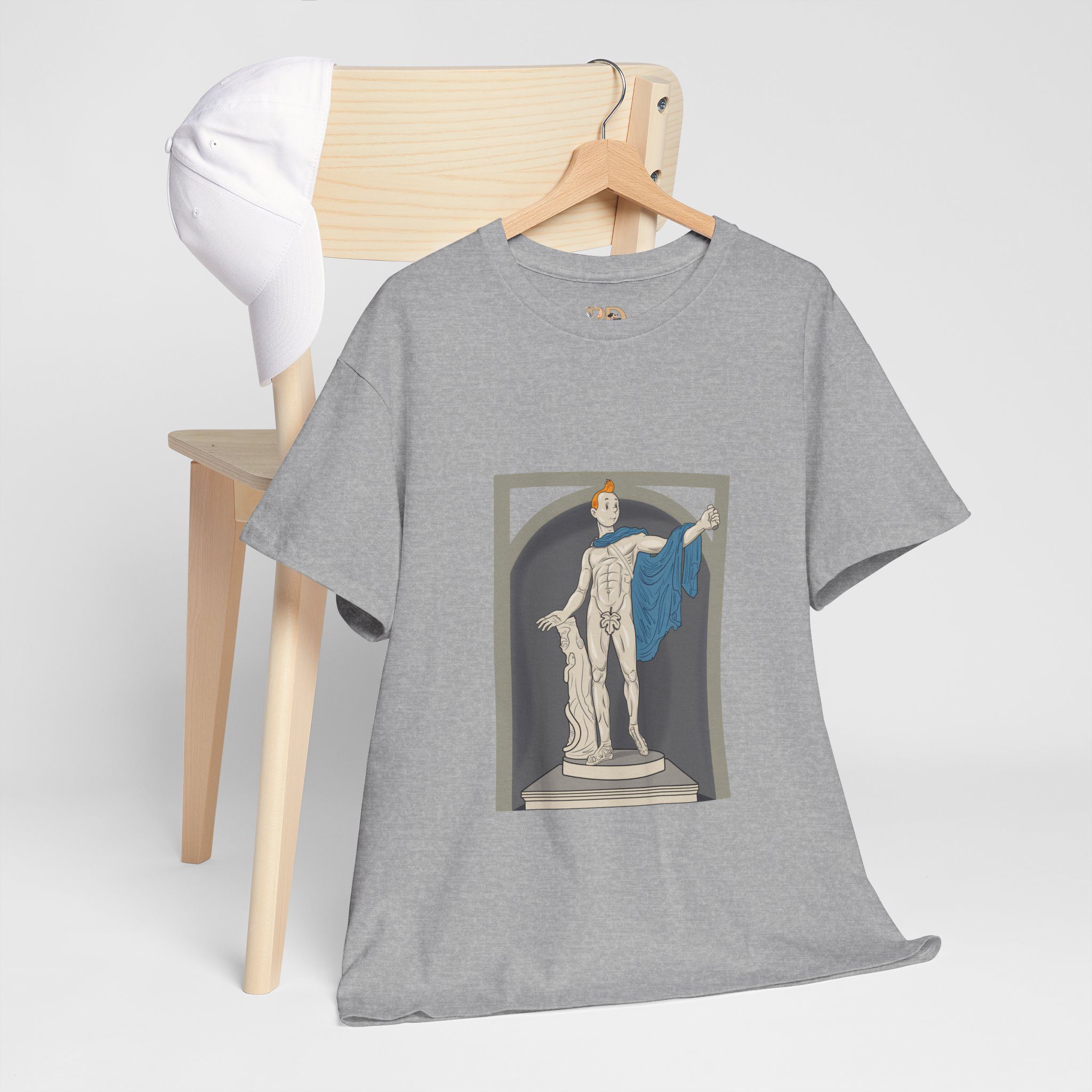 This design presents a youthful illustrated figure posed in a heroic, classical stance. Inspired by timeless ideals of curiosity, clarity, and ambition, the composition transforms ancient sculptural balance into a modern visual story about exploration and intellect.