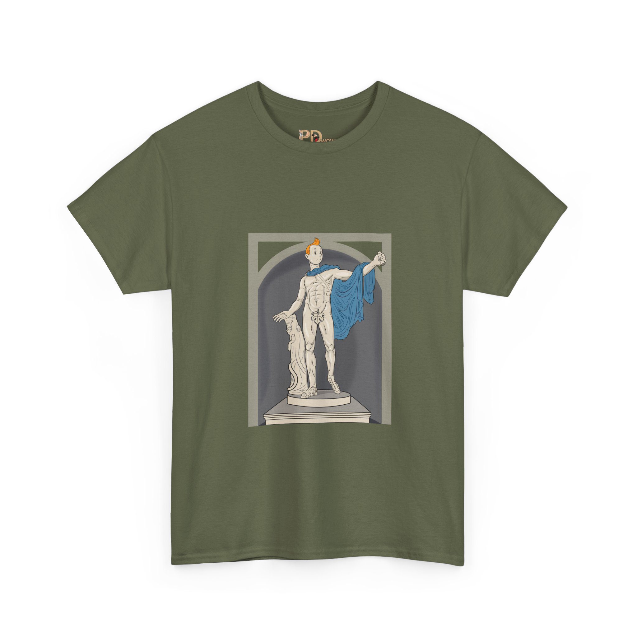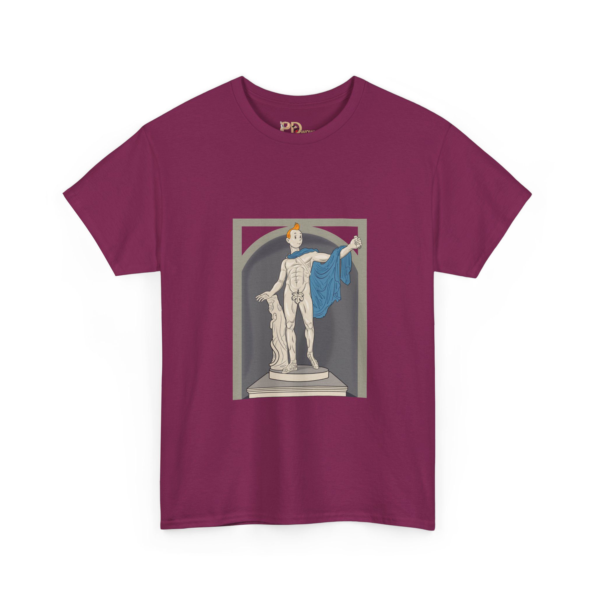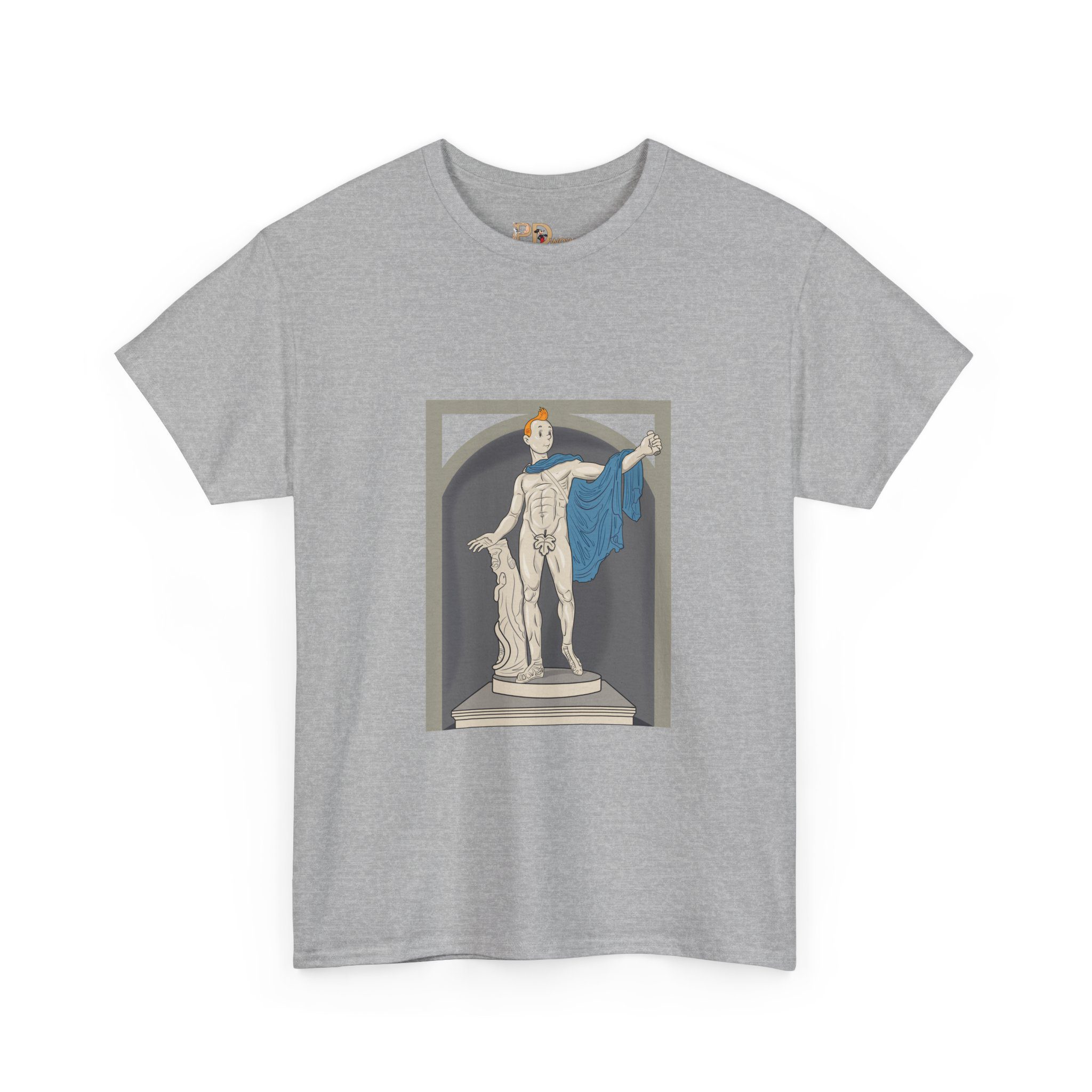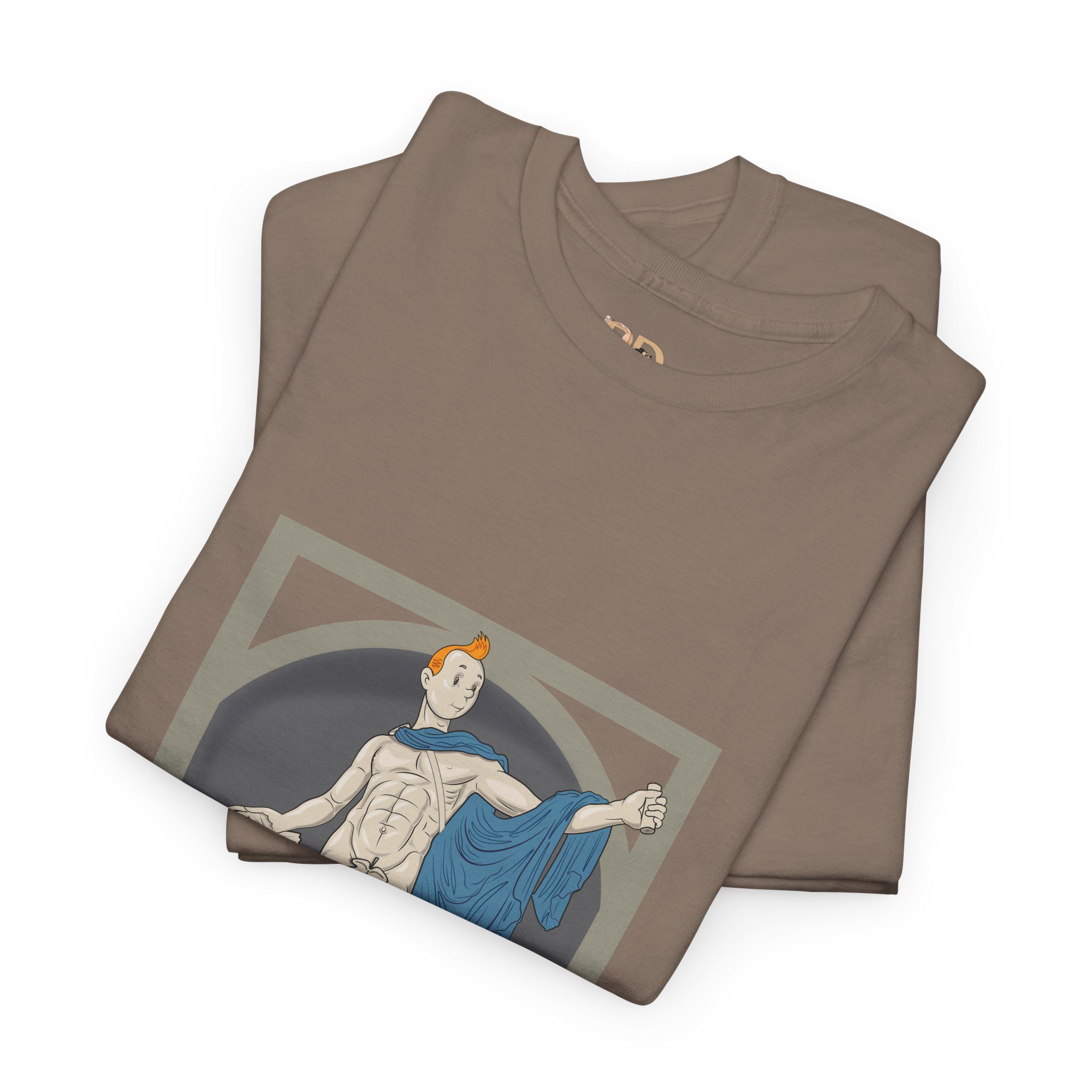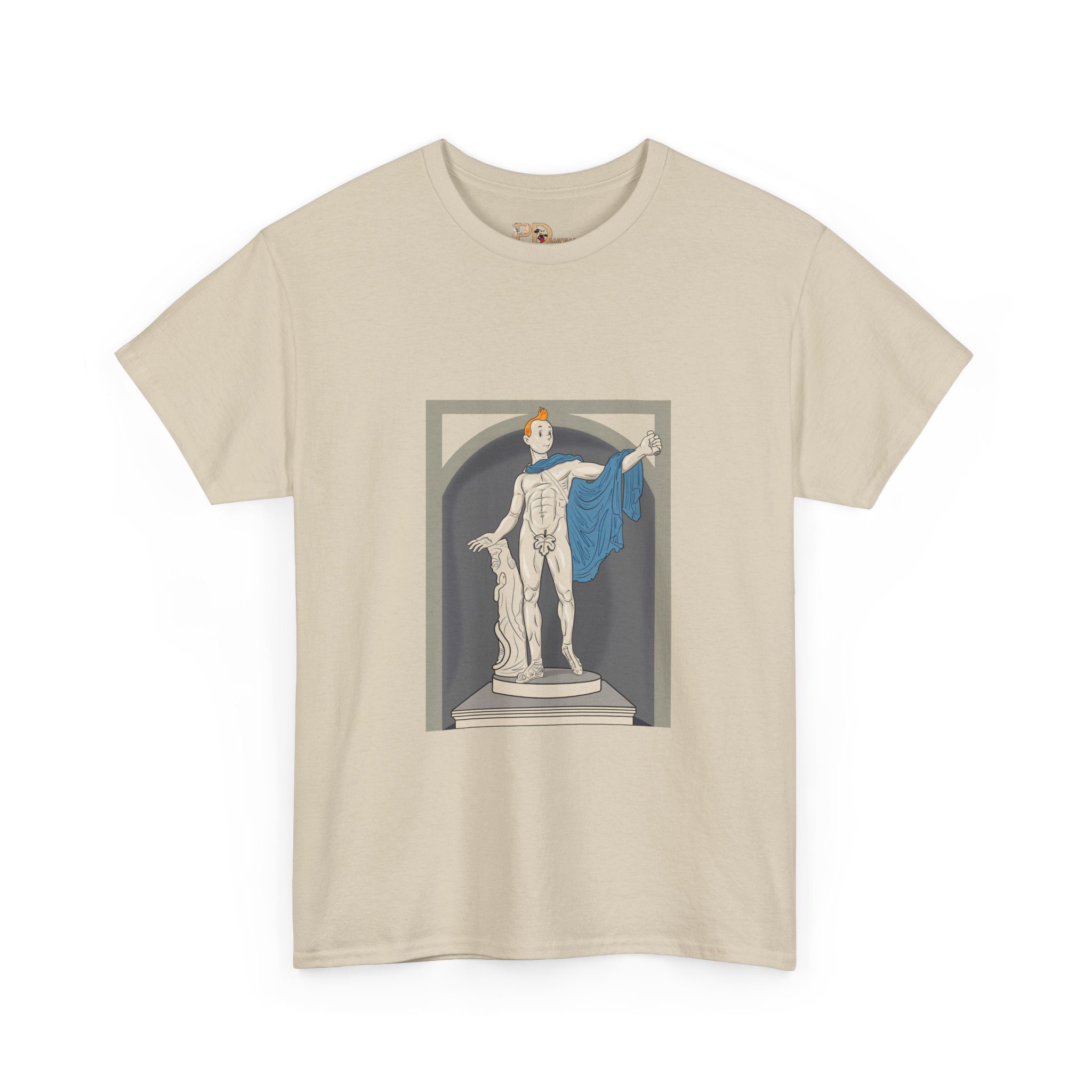 This design presents a youthful illustrated figure posed in a heroic, classical stance. Inspired by timeless ideals of curiosity, clarity, and ambition, the composition transforms ancient sculptural balance into a modern visual story about exploration and intellect.