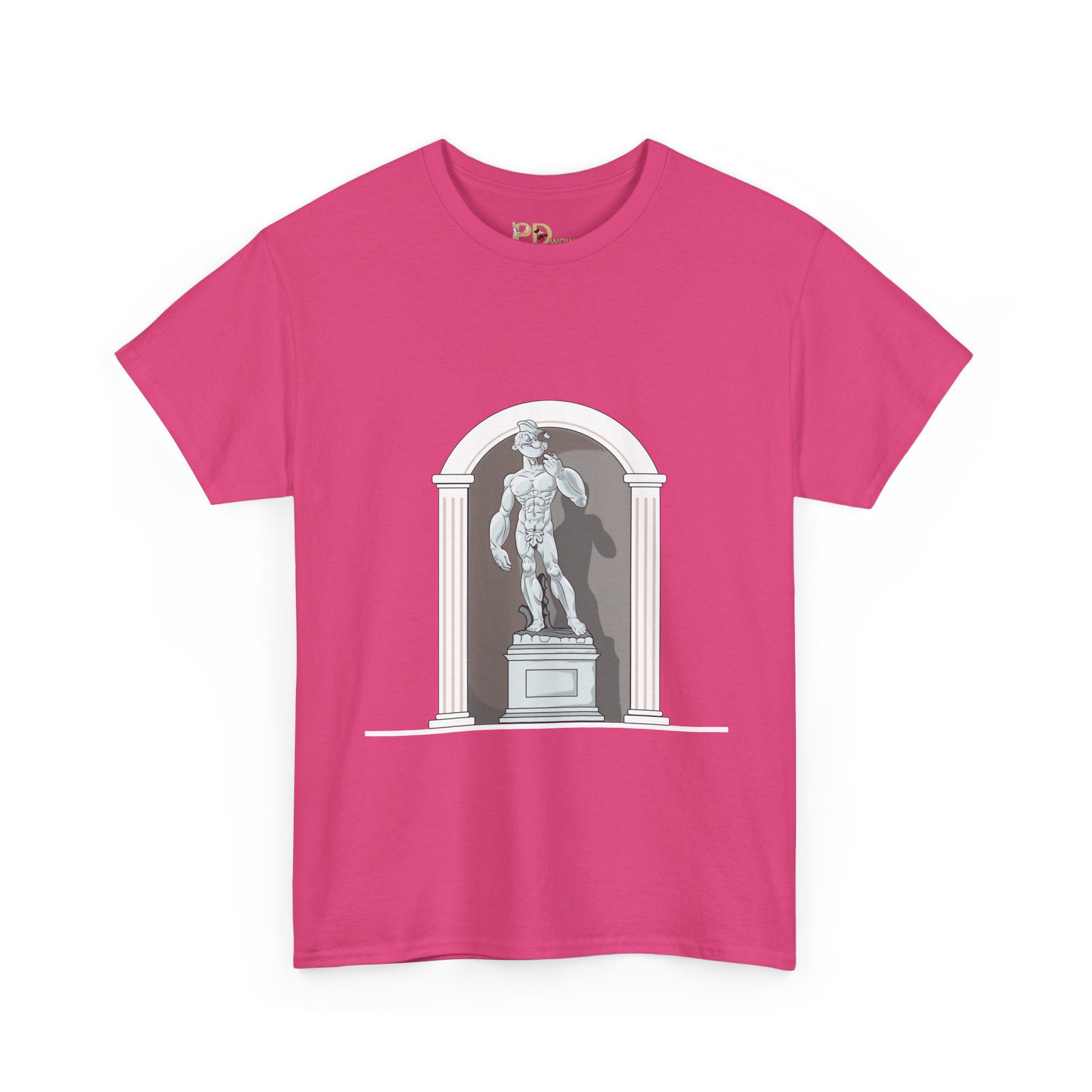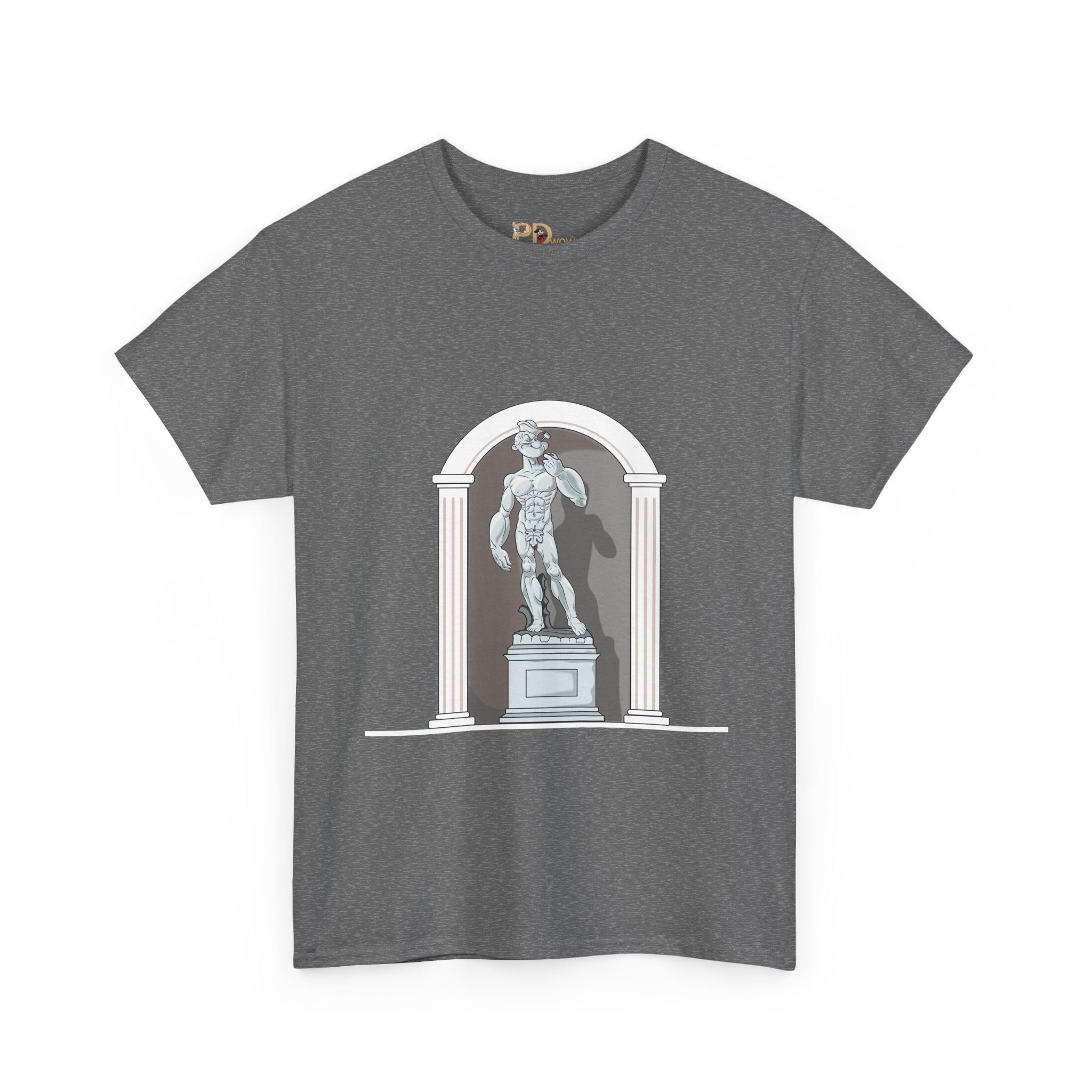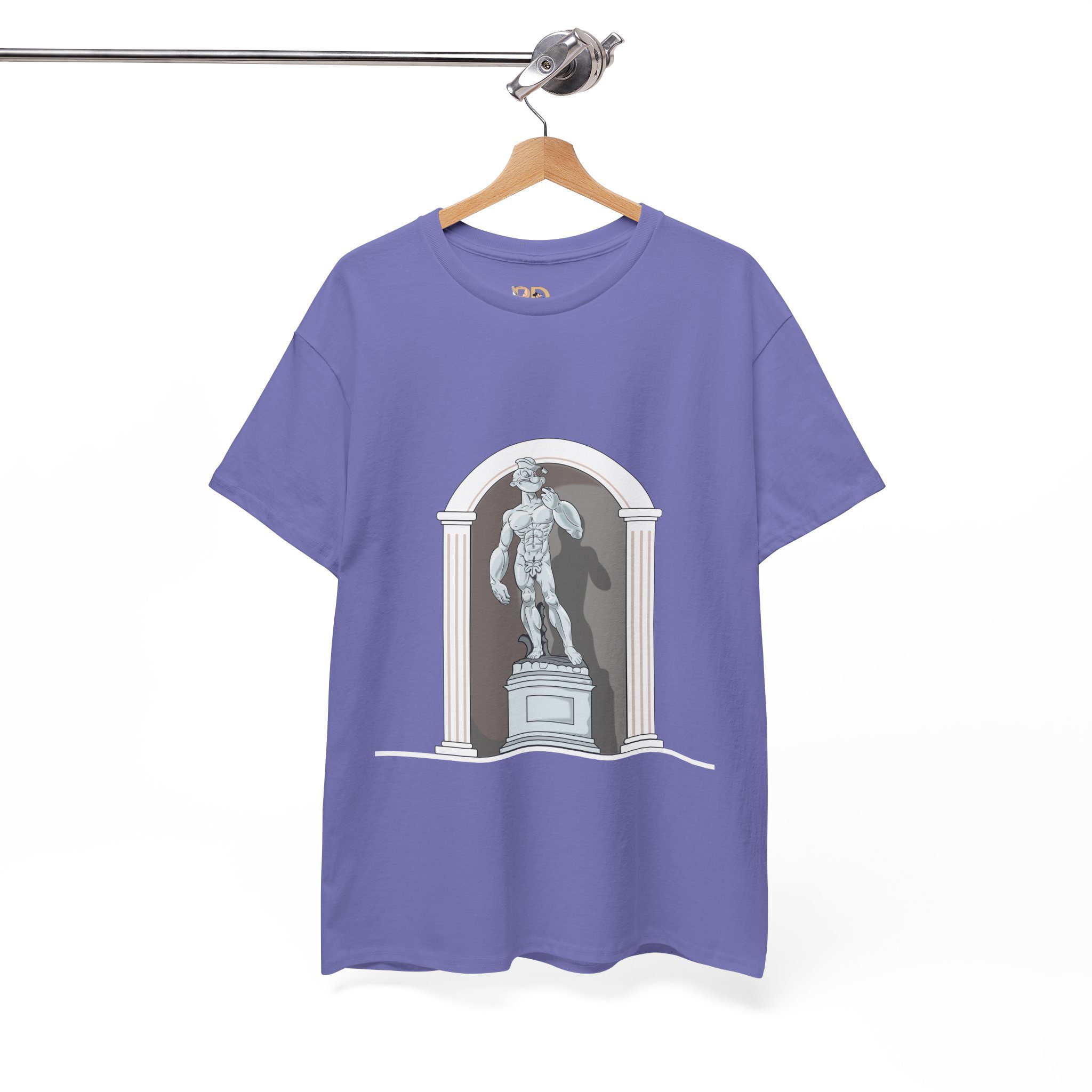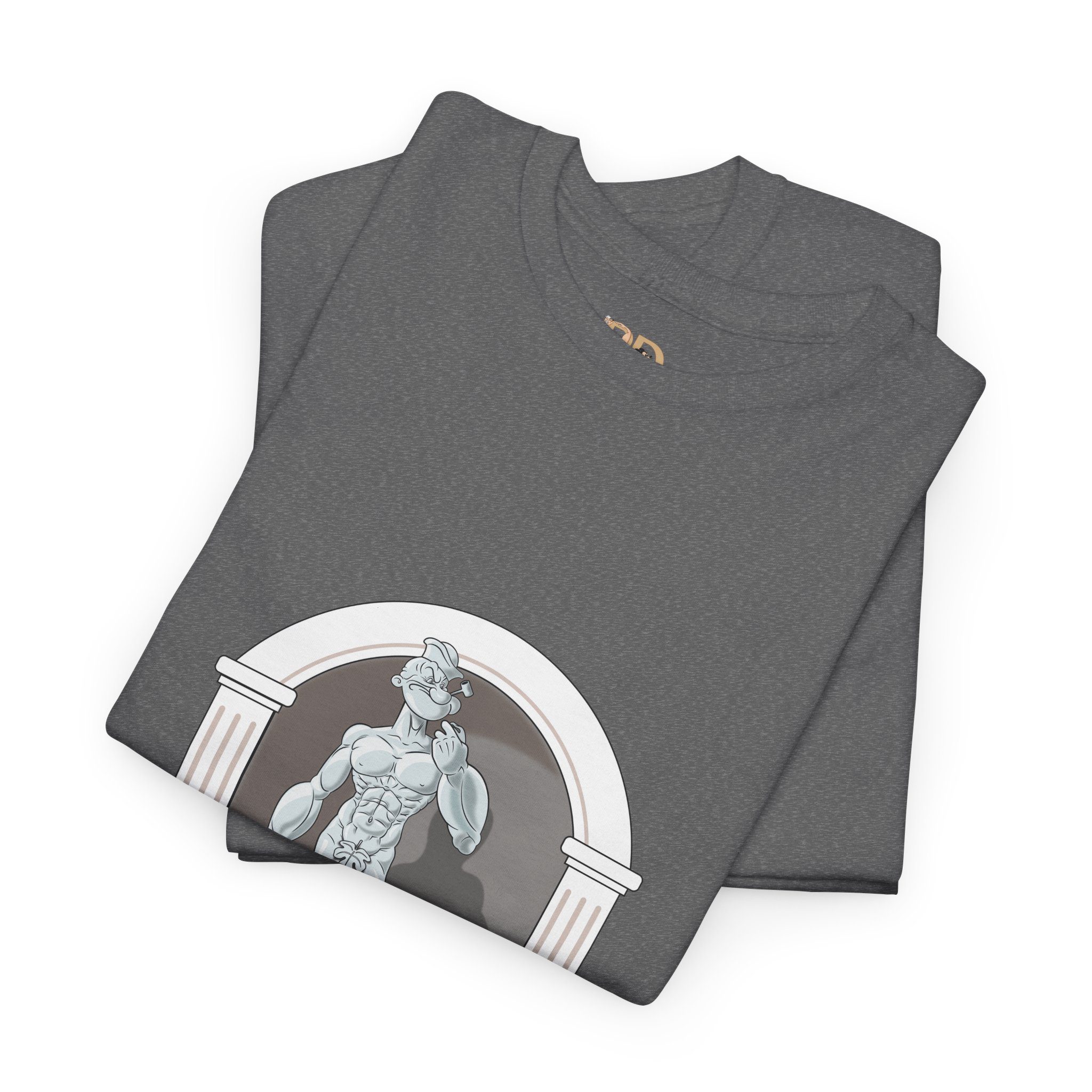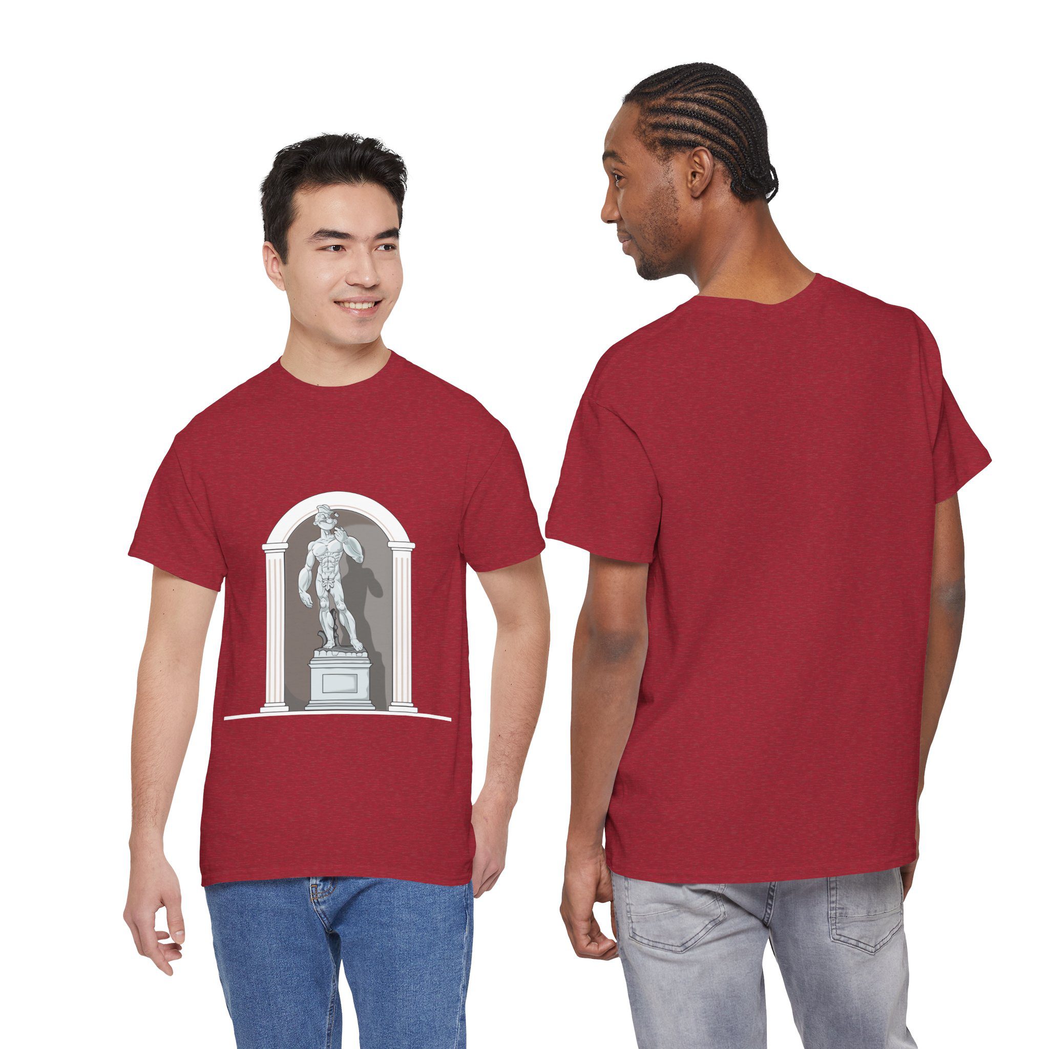 This design reimagines a classical stone figure through a bold, contemporary lens. A confident illustrated character stands in a timeless sculptural pose, blending strength, attitude, and playful irony into a fresh visual statement.
