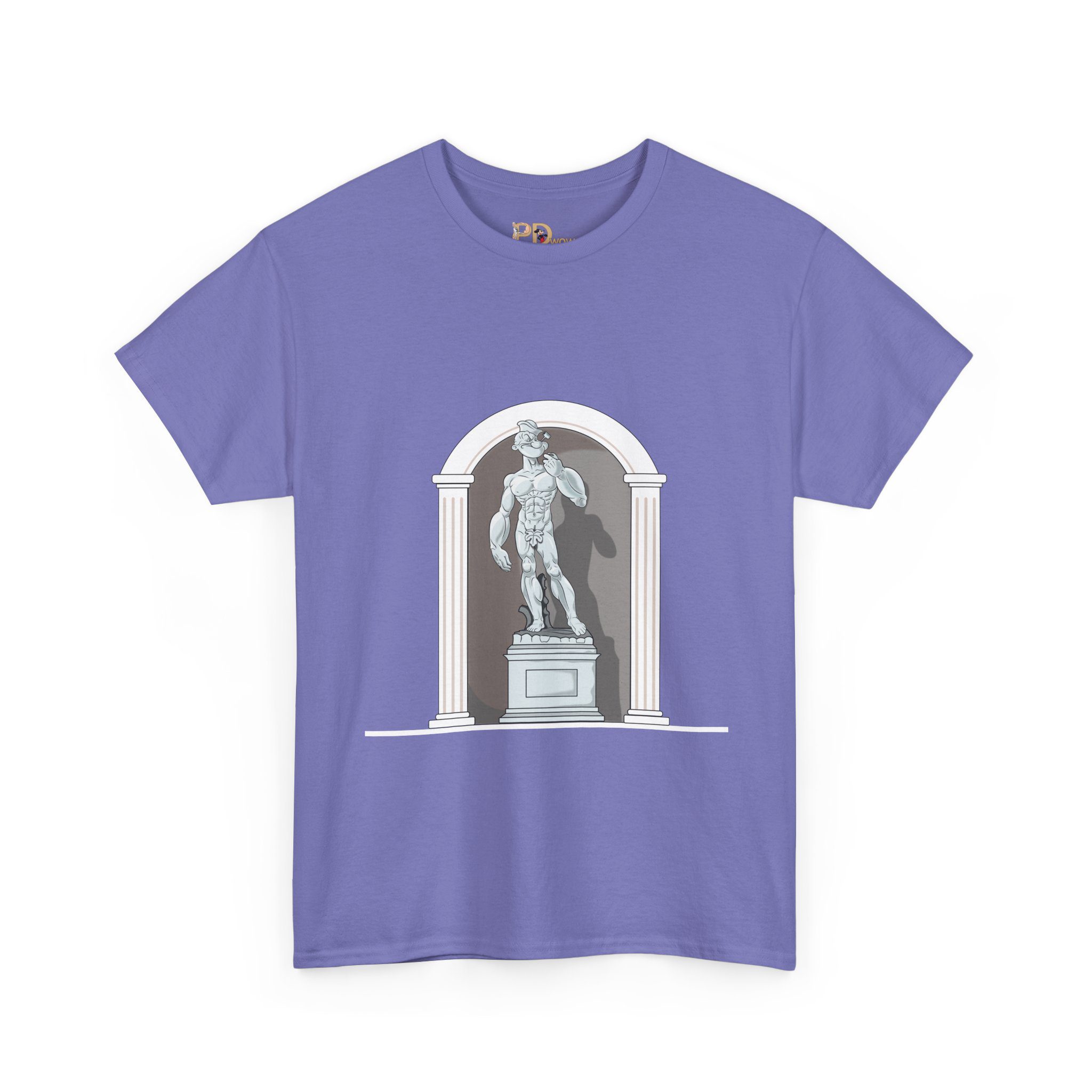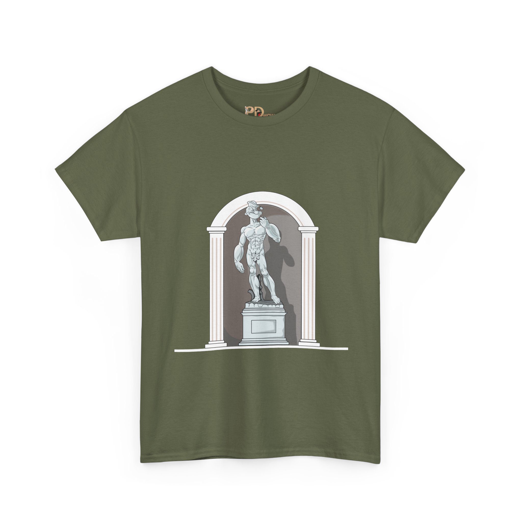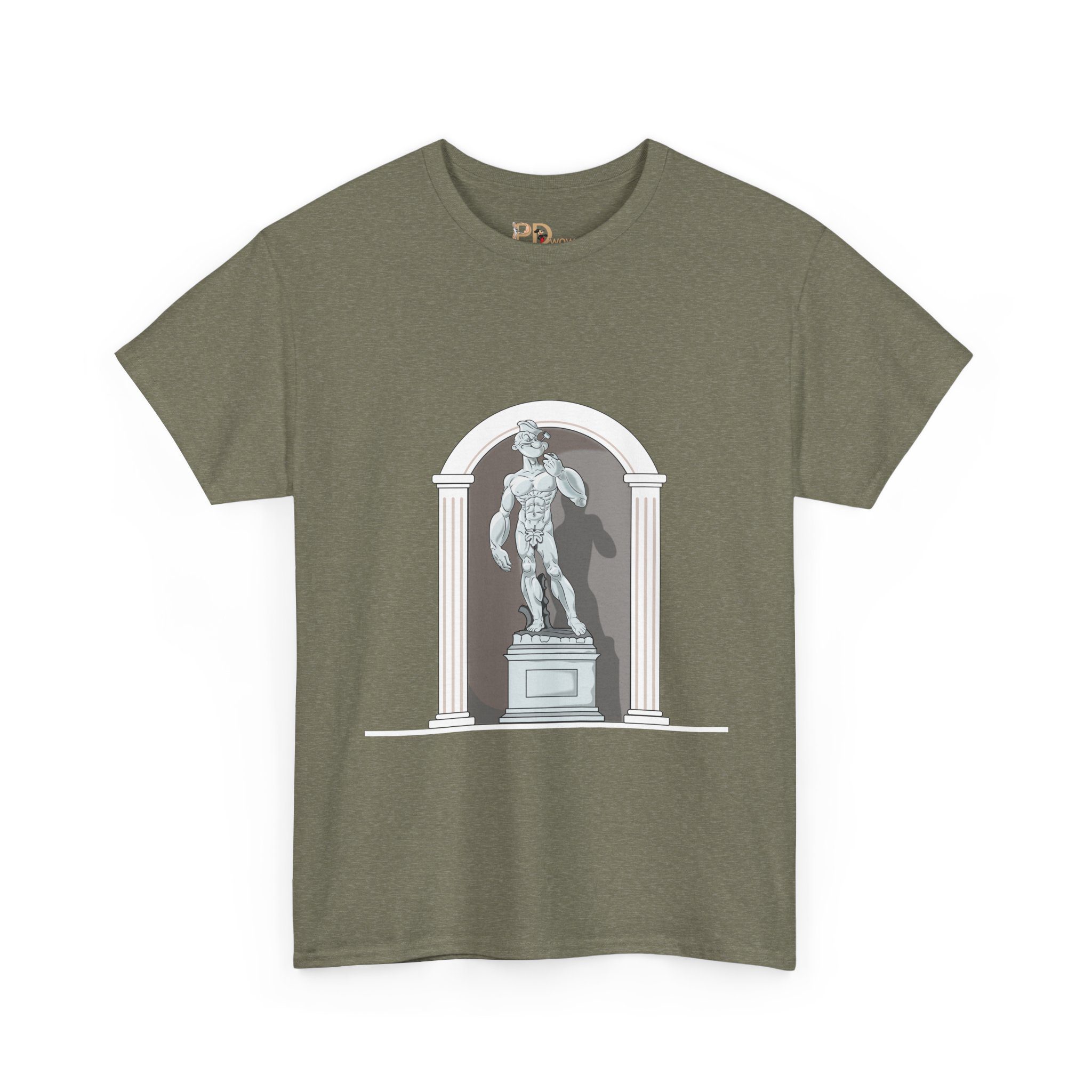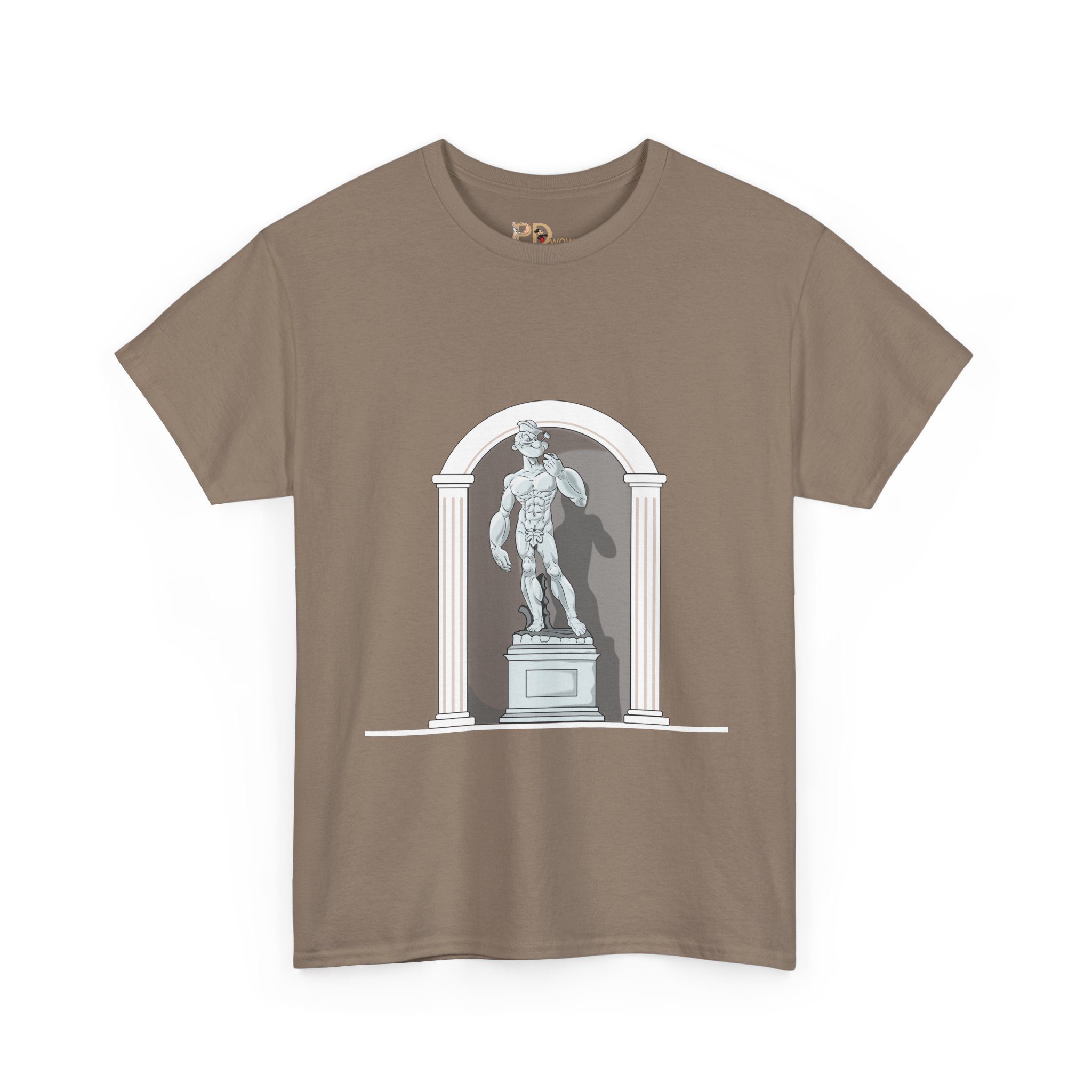 This design reimagines a classical stone figure through a bold, contemporary lens. A confident illustrated character stands in a timeless sculptural pose, blending strength, attitude, and playful irony into a fresh visual statement.
