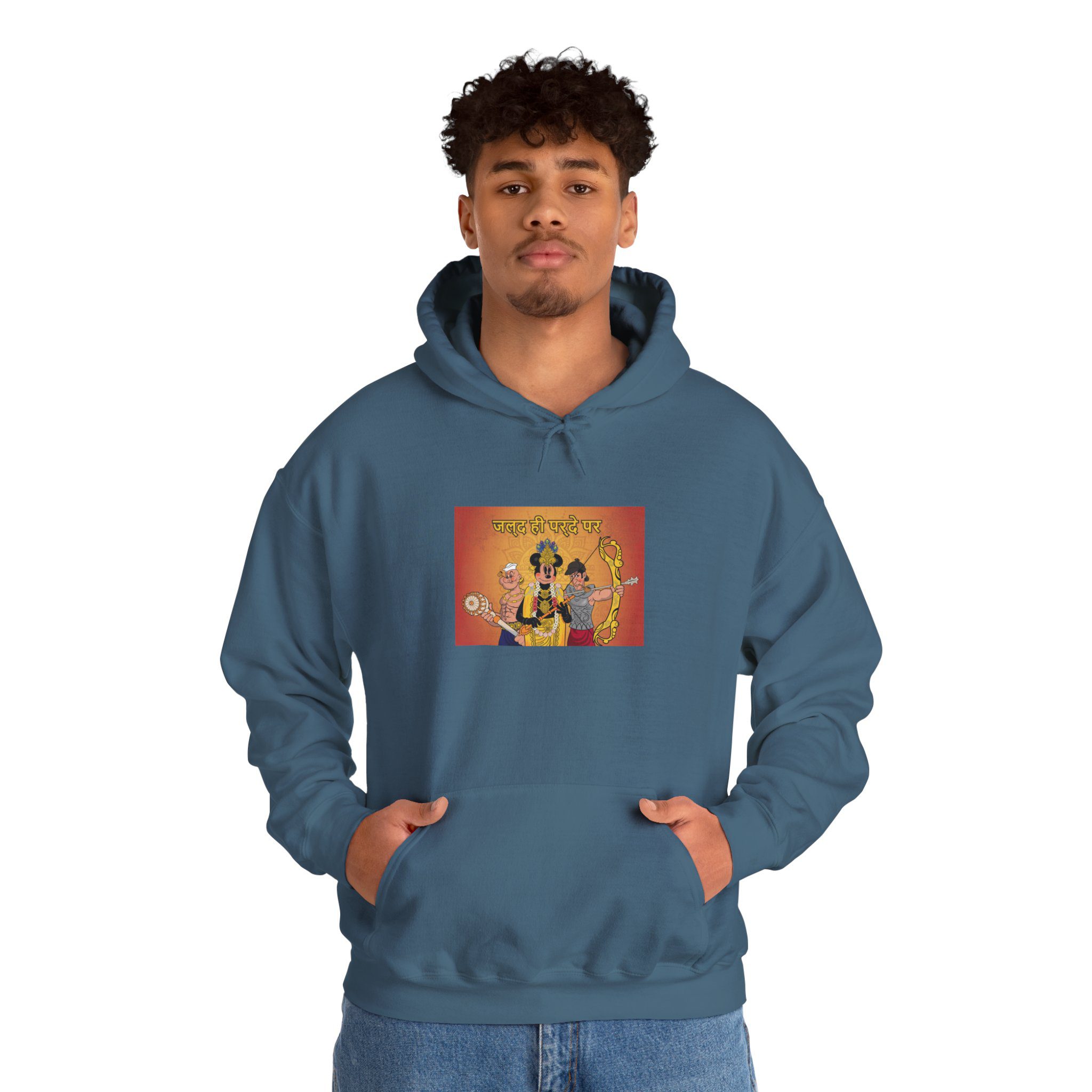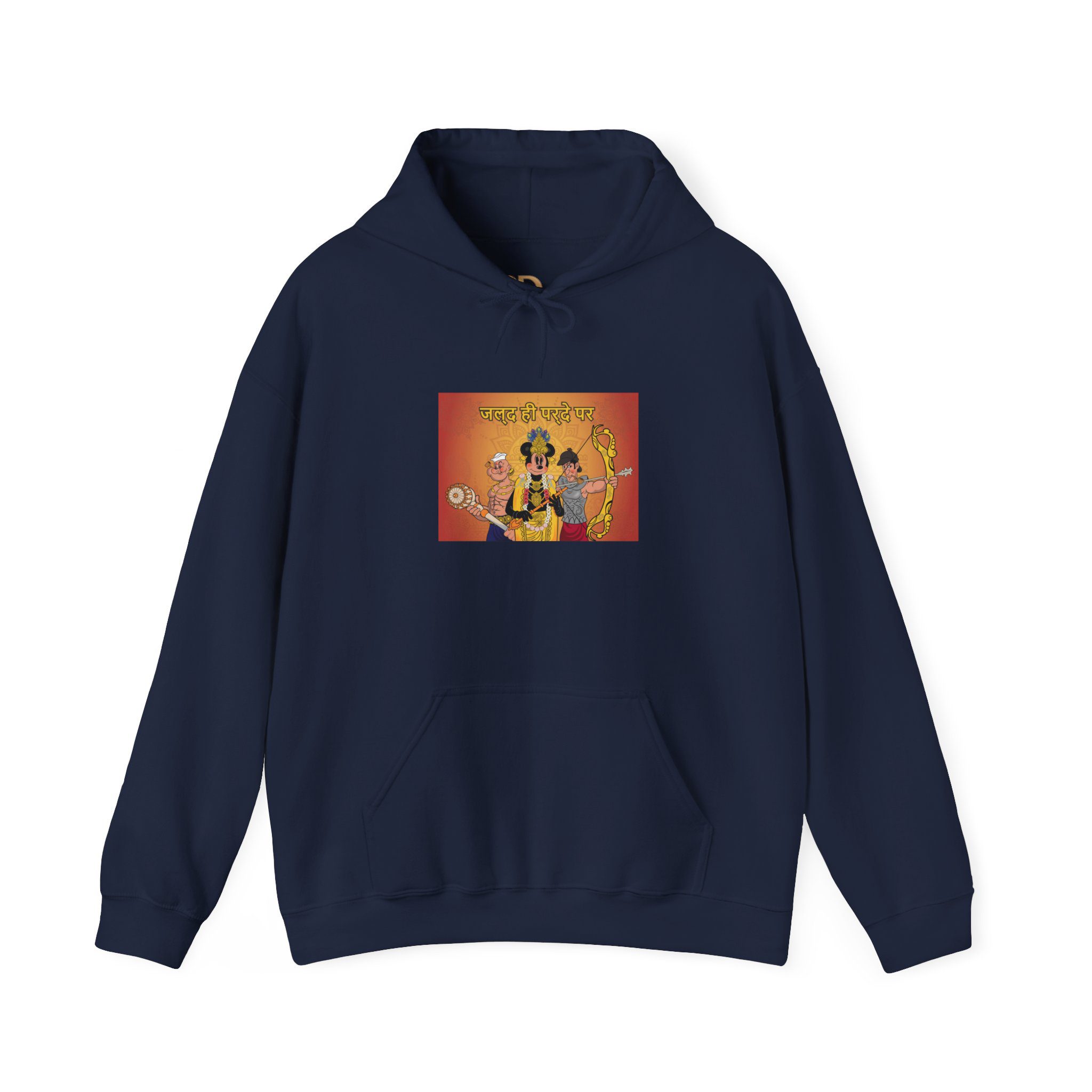 Sacred storytelling gets a playful reboot in this myth-inspired fusion hoodie, where ancient epic themes meet bold cartoon-style expression. The illustrated characters step into divine-inspired roles with theatrical confidence, blending reverence, humor, and unapologetic visual flair.