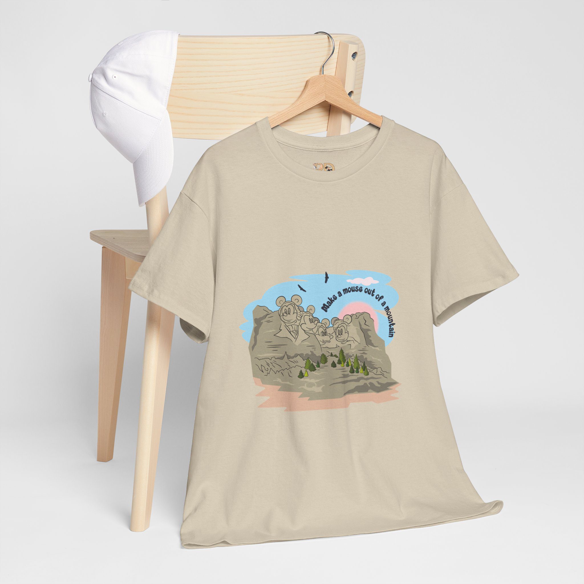 This design presents a humorous reinterpretation of a monumental stone structure through a playful illustrated lens. A bold, cartoon-style composition transforms a traditionally serious form into a lighthearted visual statement about imagination, scale, and creative freedom.