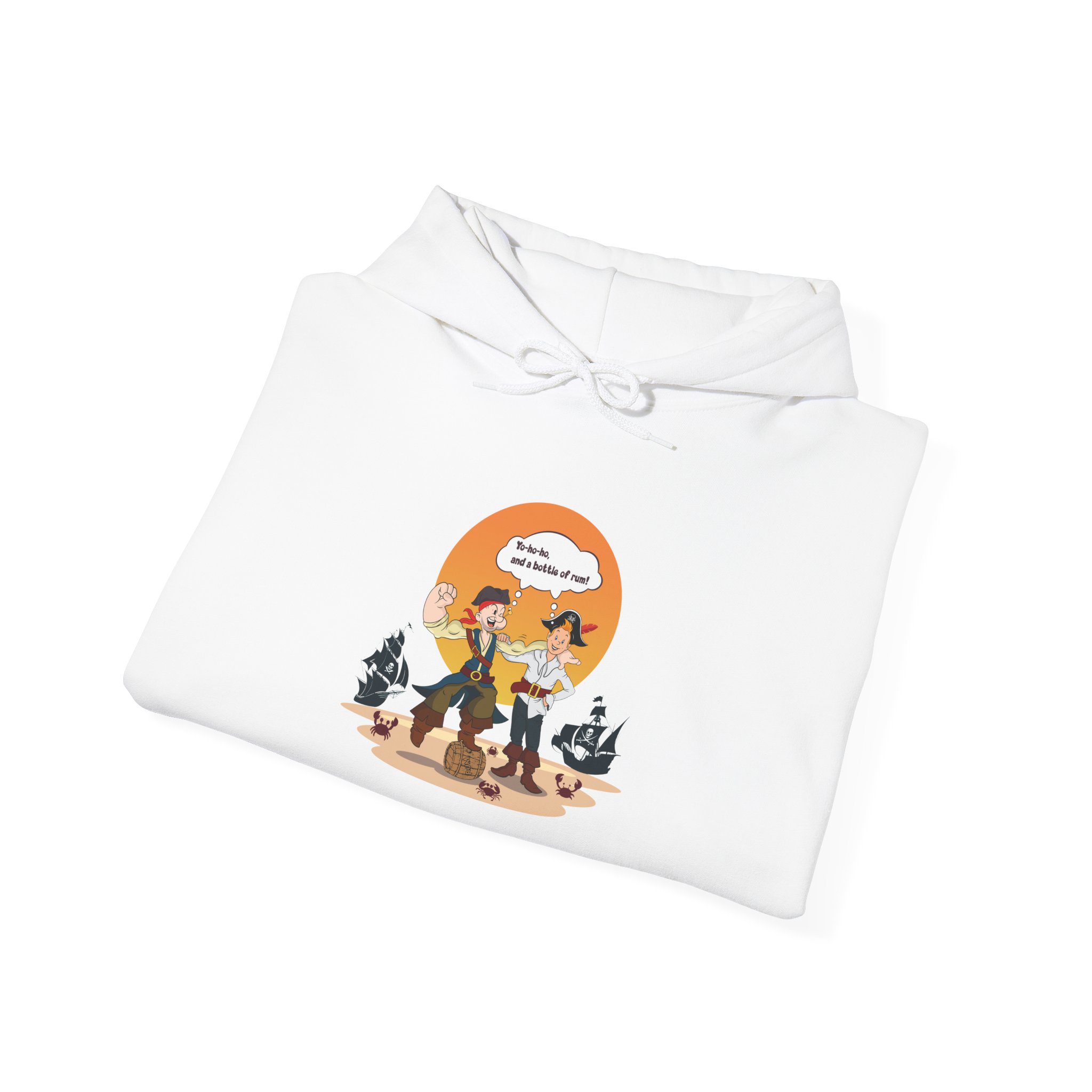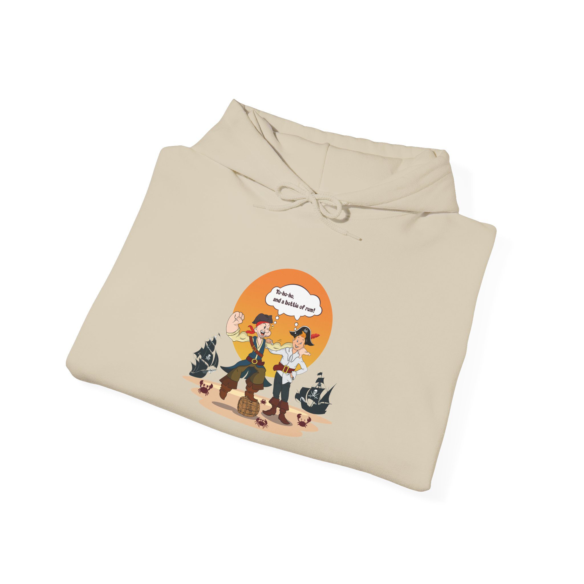 Made for fans of nautical themes, adventure humor, and character-driven illustration, this hoodie feels cozy and fun. The illustrated crew adds energy and charm, making the piece perfect for cold days, casual outings, or relaxed gifting.