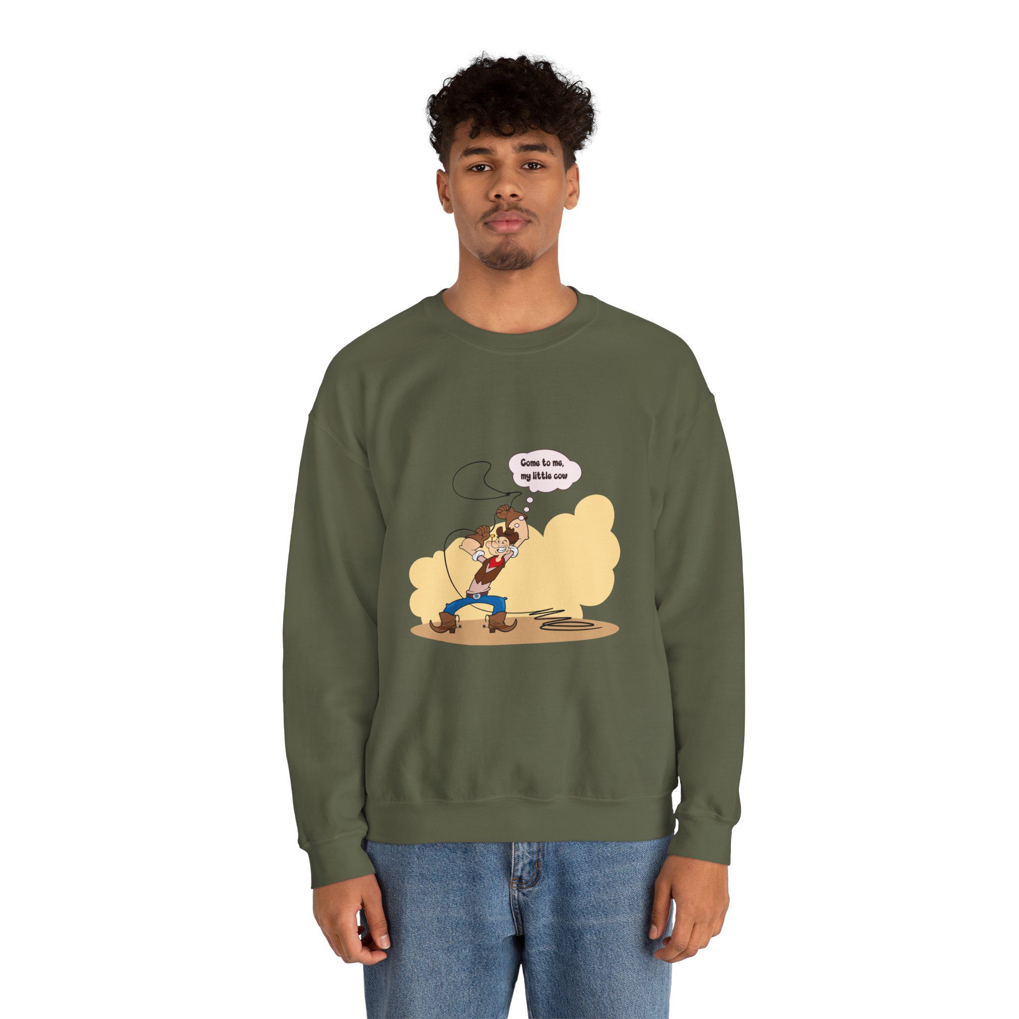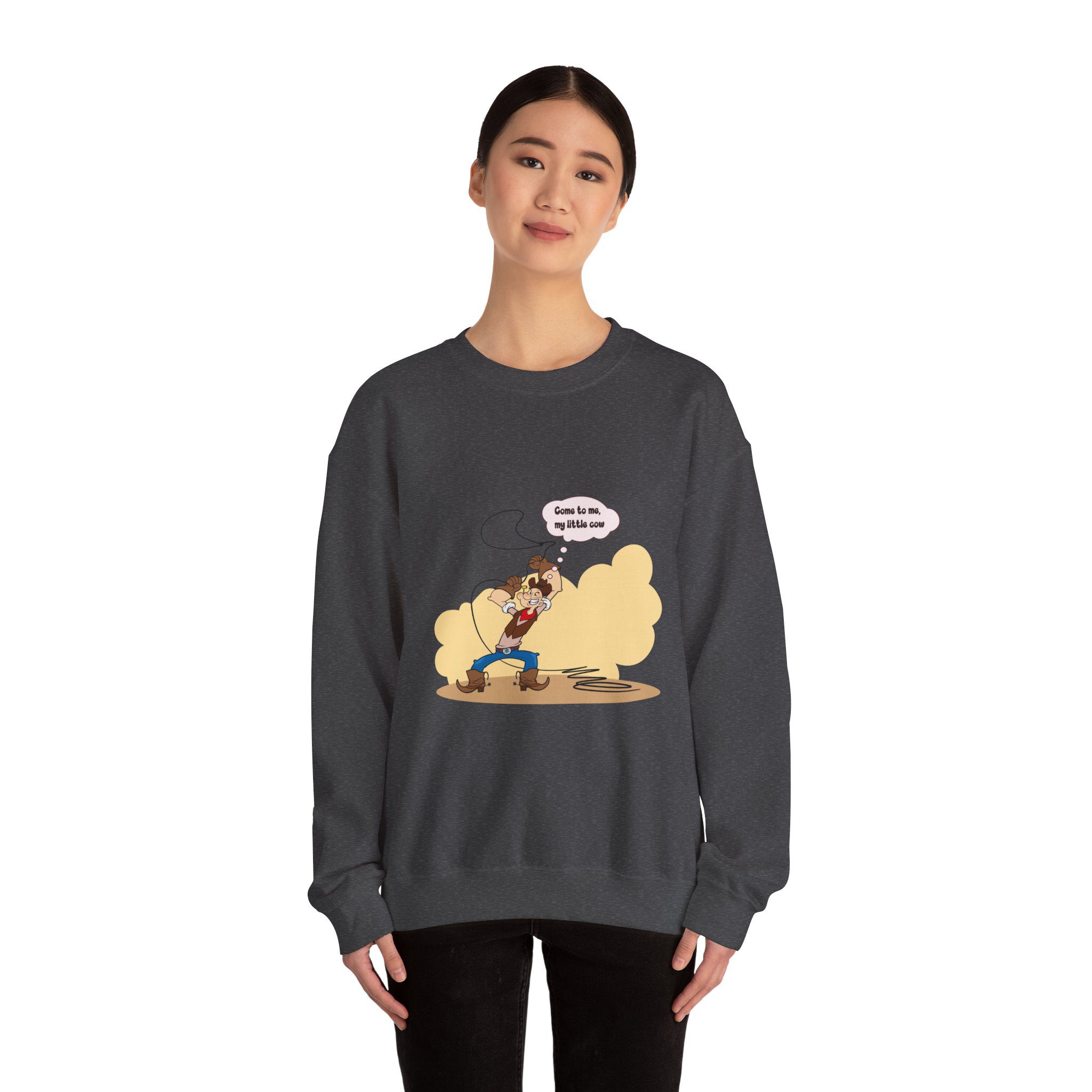 Created for fans of Western aesthetics, retro humor, and character-driven design, this sweatshirt feels relaxed and fun. The illustrated figure adds personality without overpowering the outfit, making it perfect for casual wear, gifting, or adding a playful twist to everyday looks.
