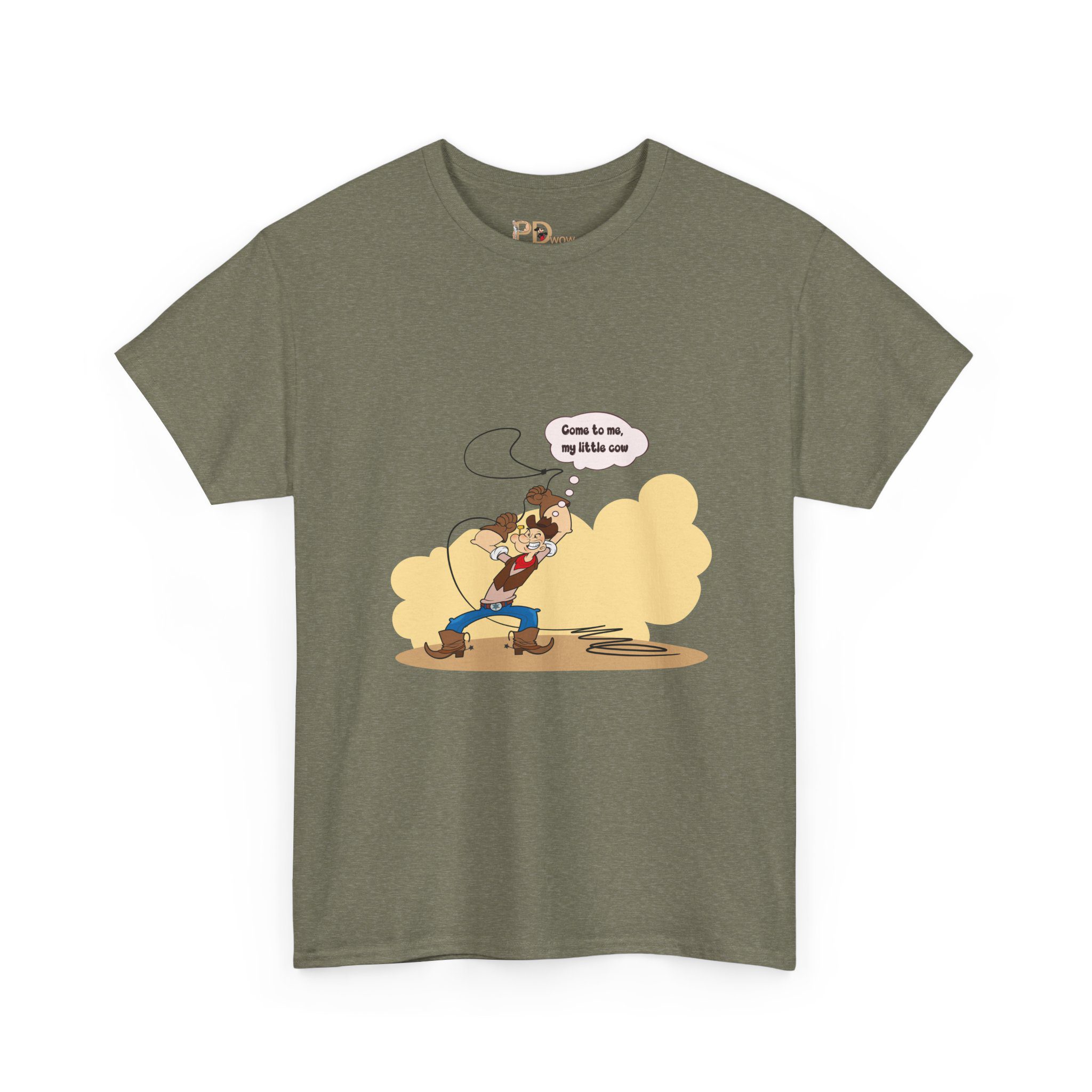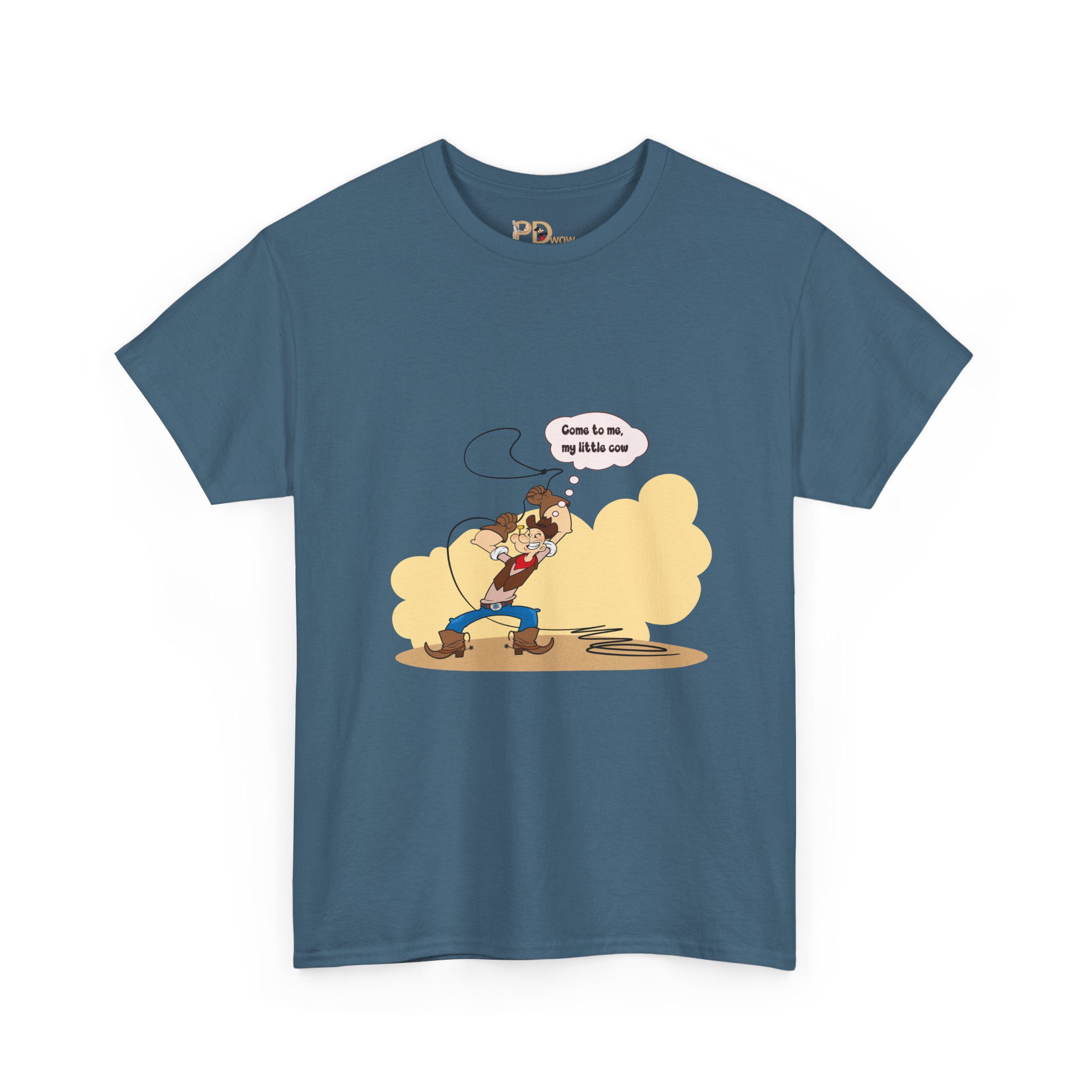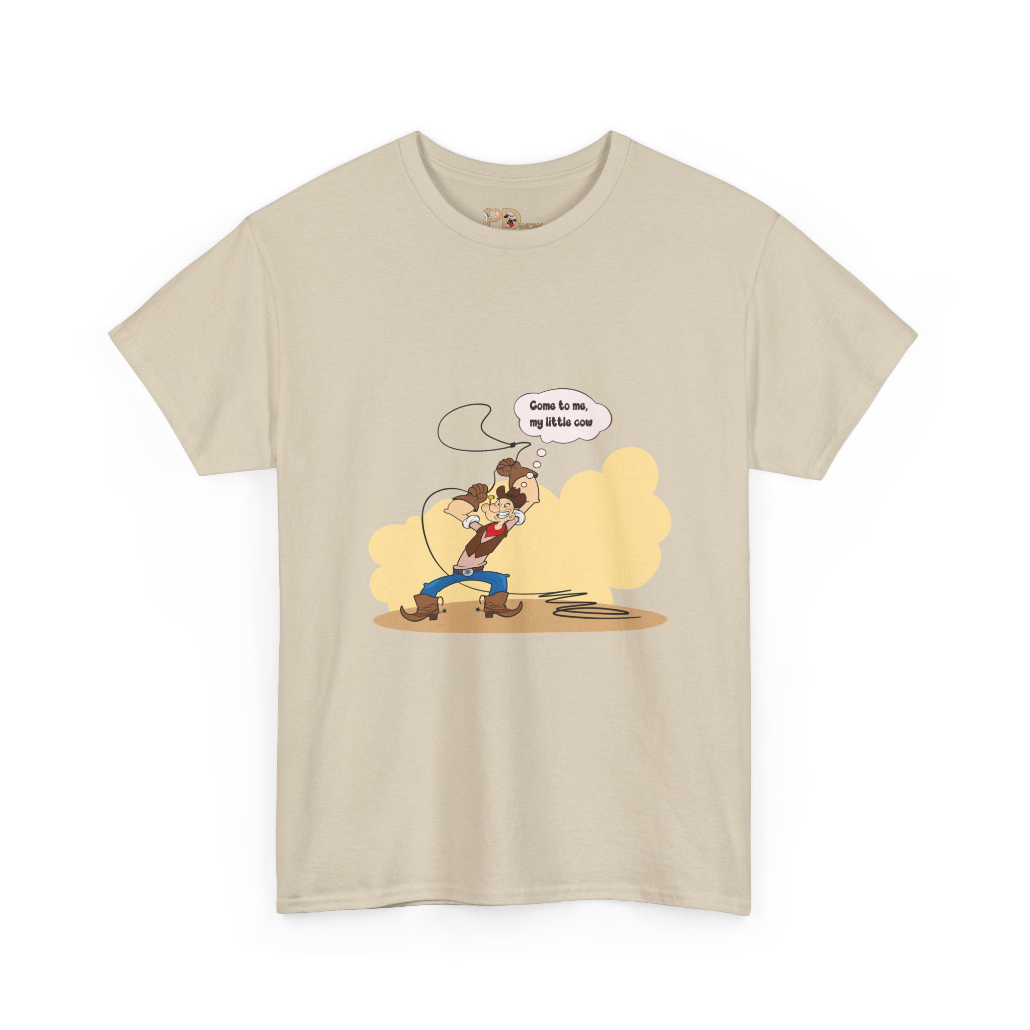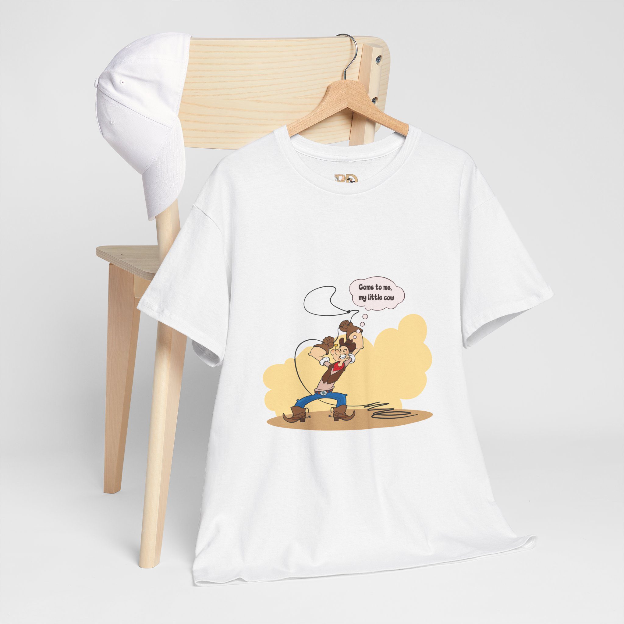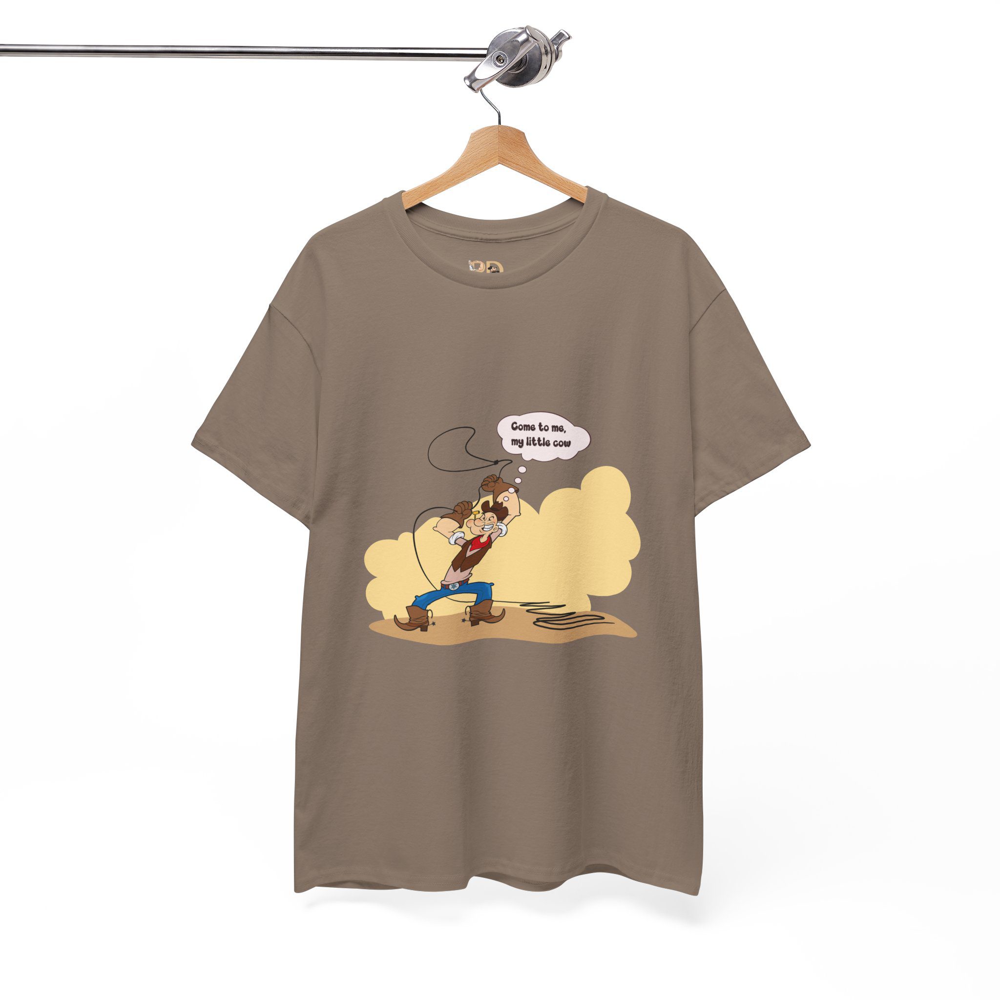 The artwork uses clean cartoon lines, bold shapes, and simple details inspired by retro Western aesthetics. The composition feels energetic yet friendly, balancing humor with a timeless, casual look.