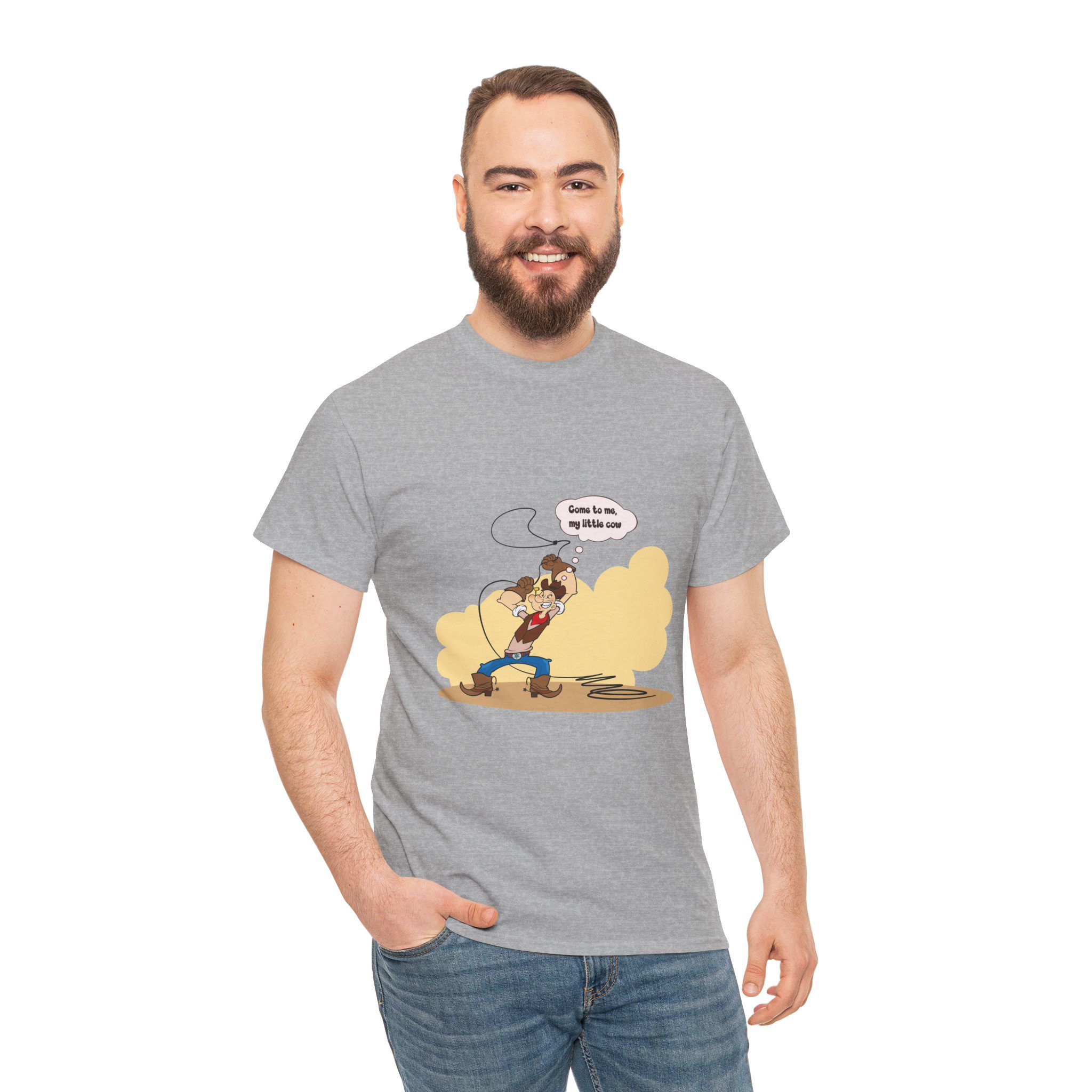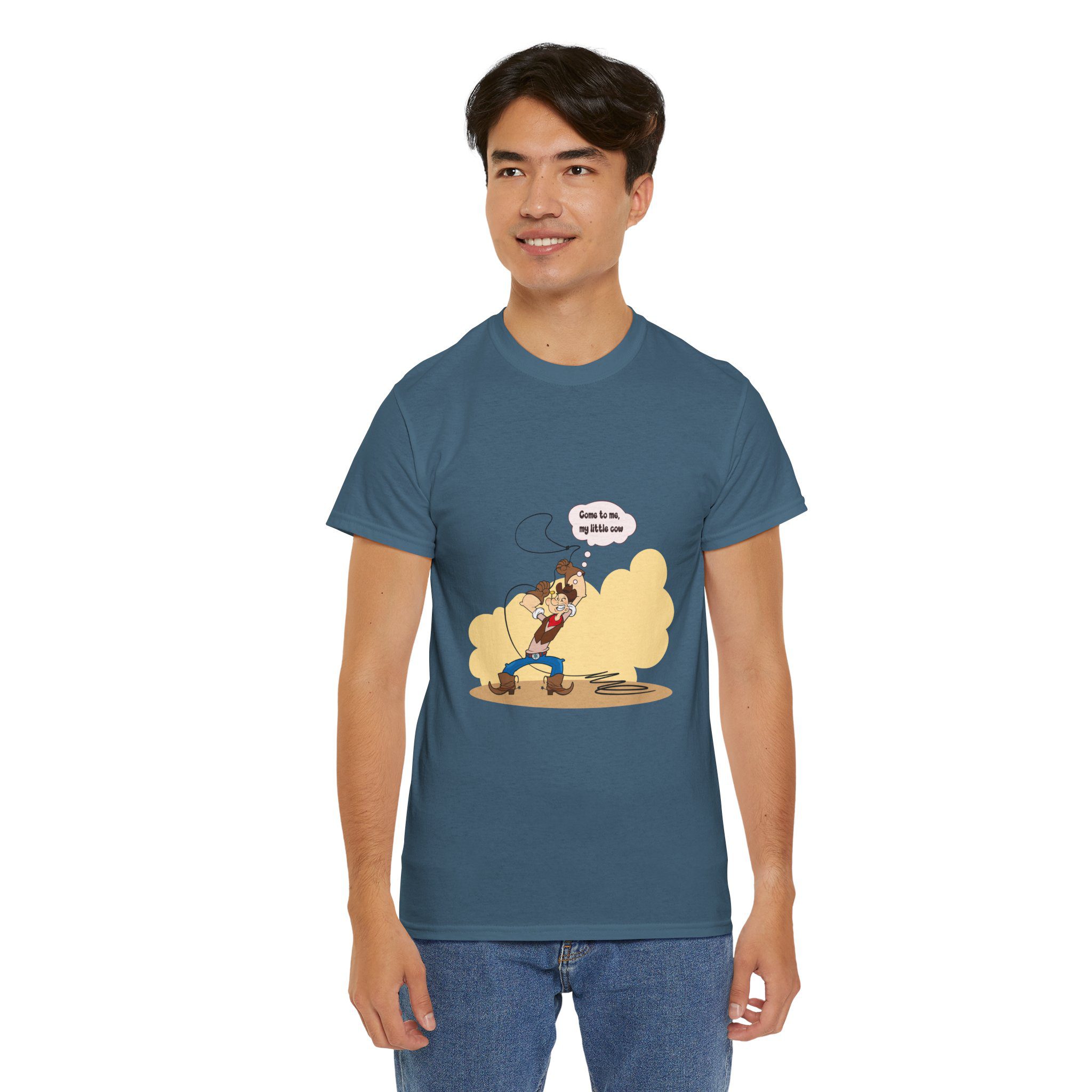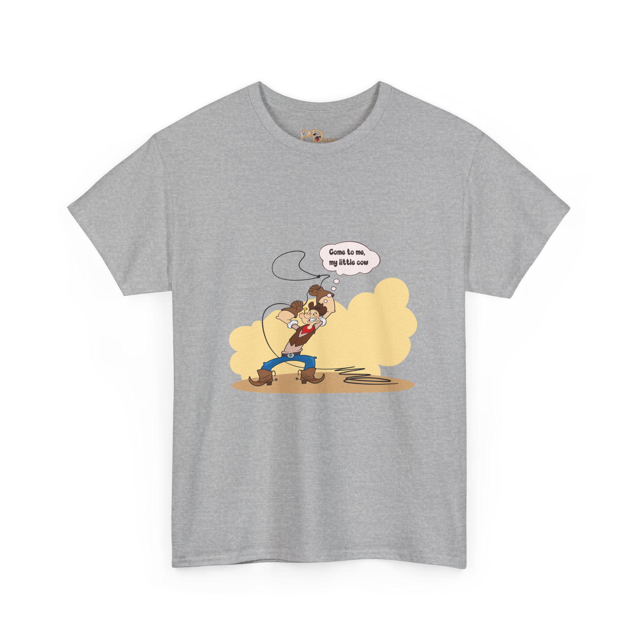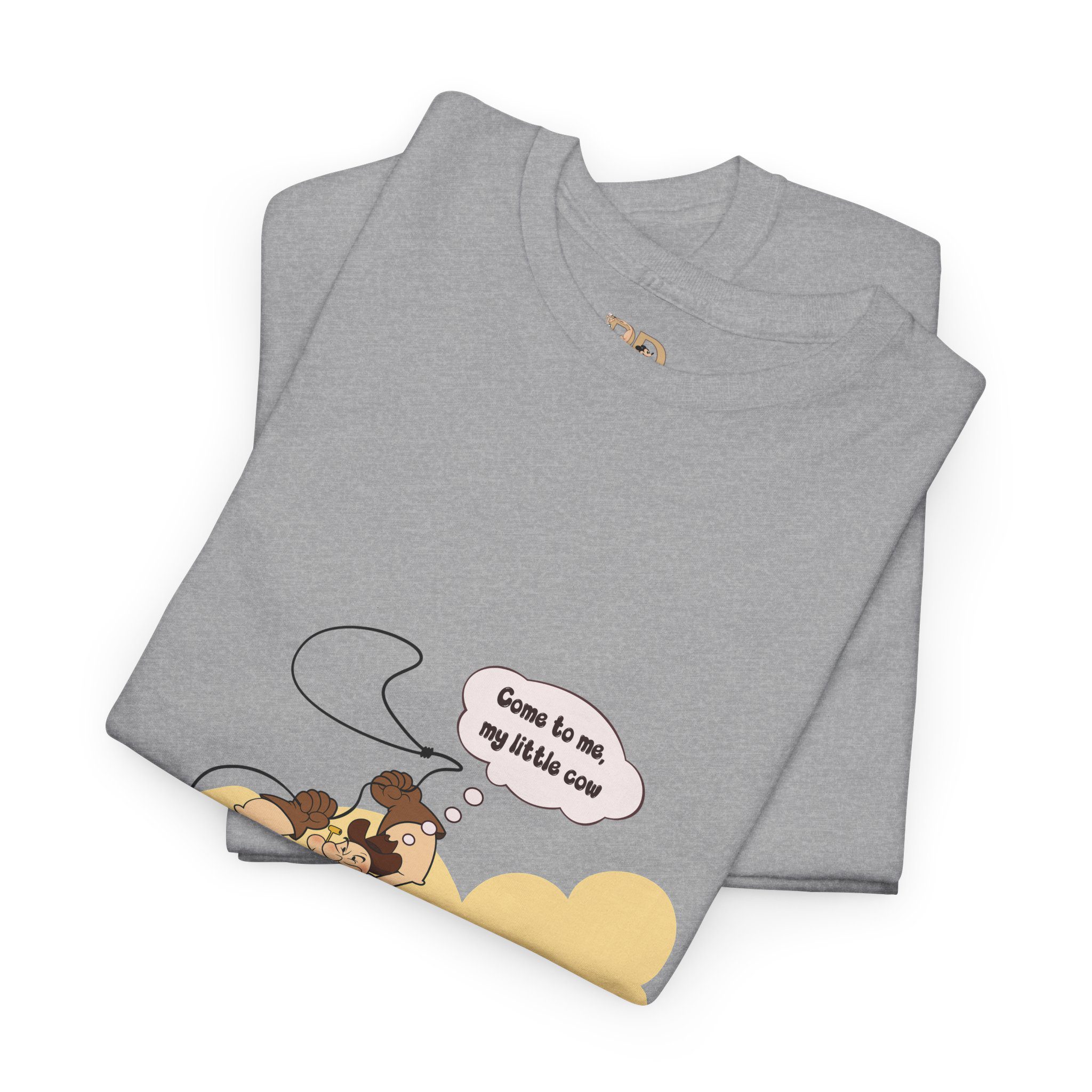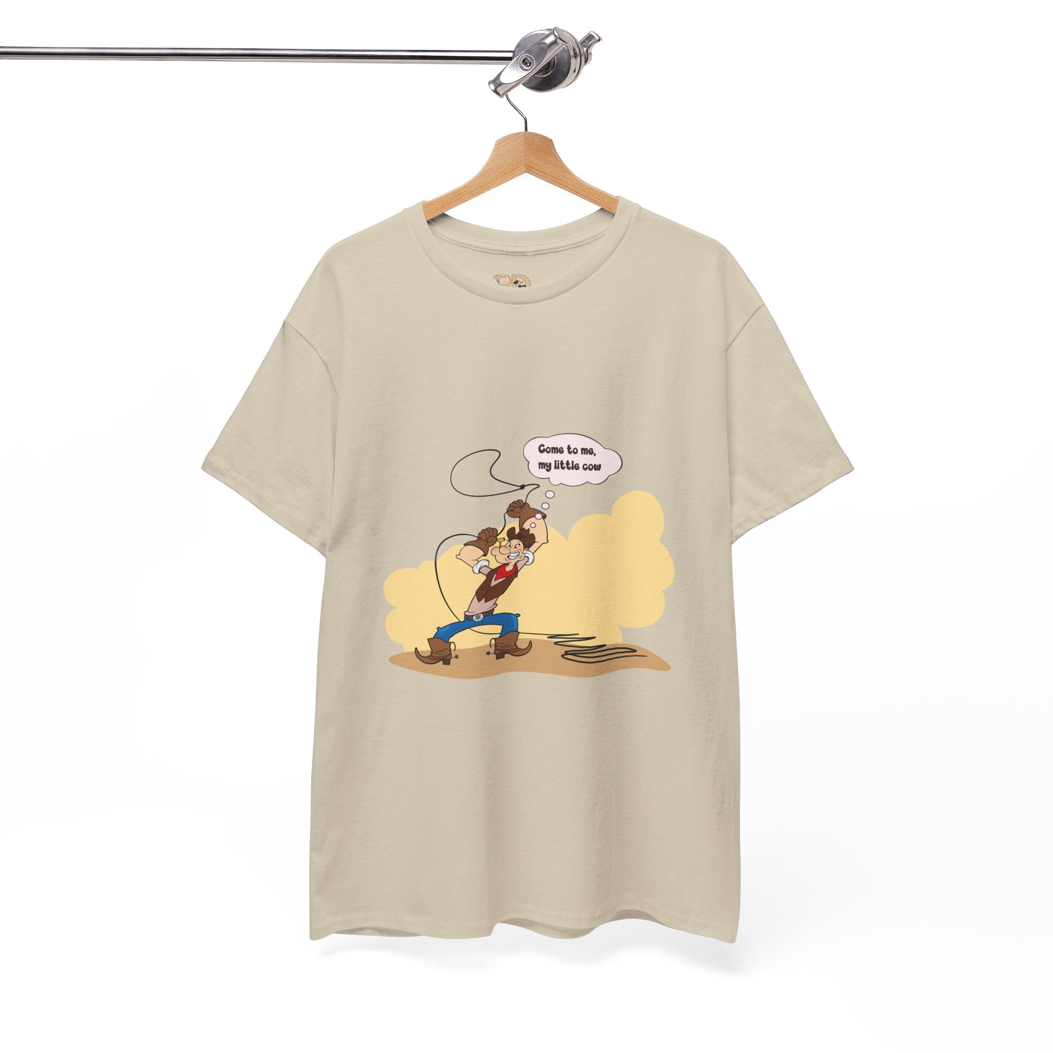 The artwork uses clean cartoon lines, bold shapes, and simple details inspired by retro Western aesthetics. The composition feels energetic yet friendly, balancing humor with a timeless, casual look.