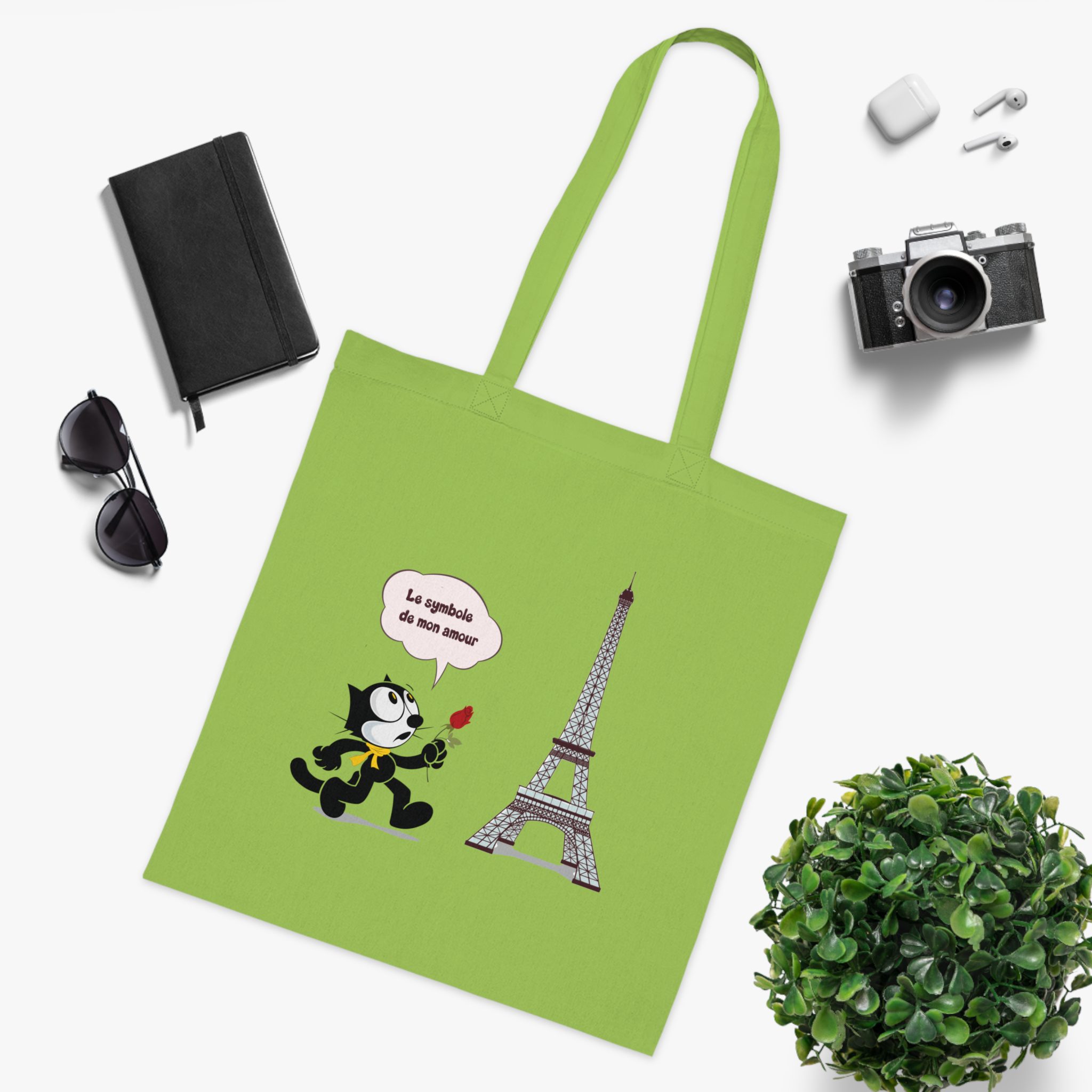 Romantic Cartoon Cat in Paris Art Tote Bag with Vintage Charm