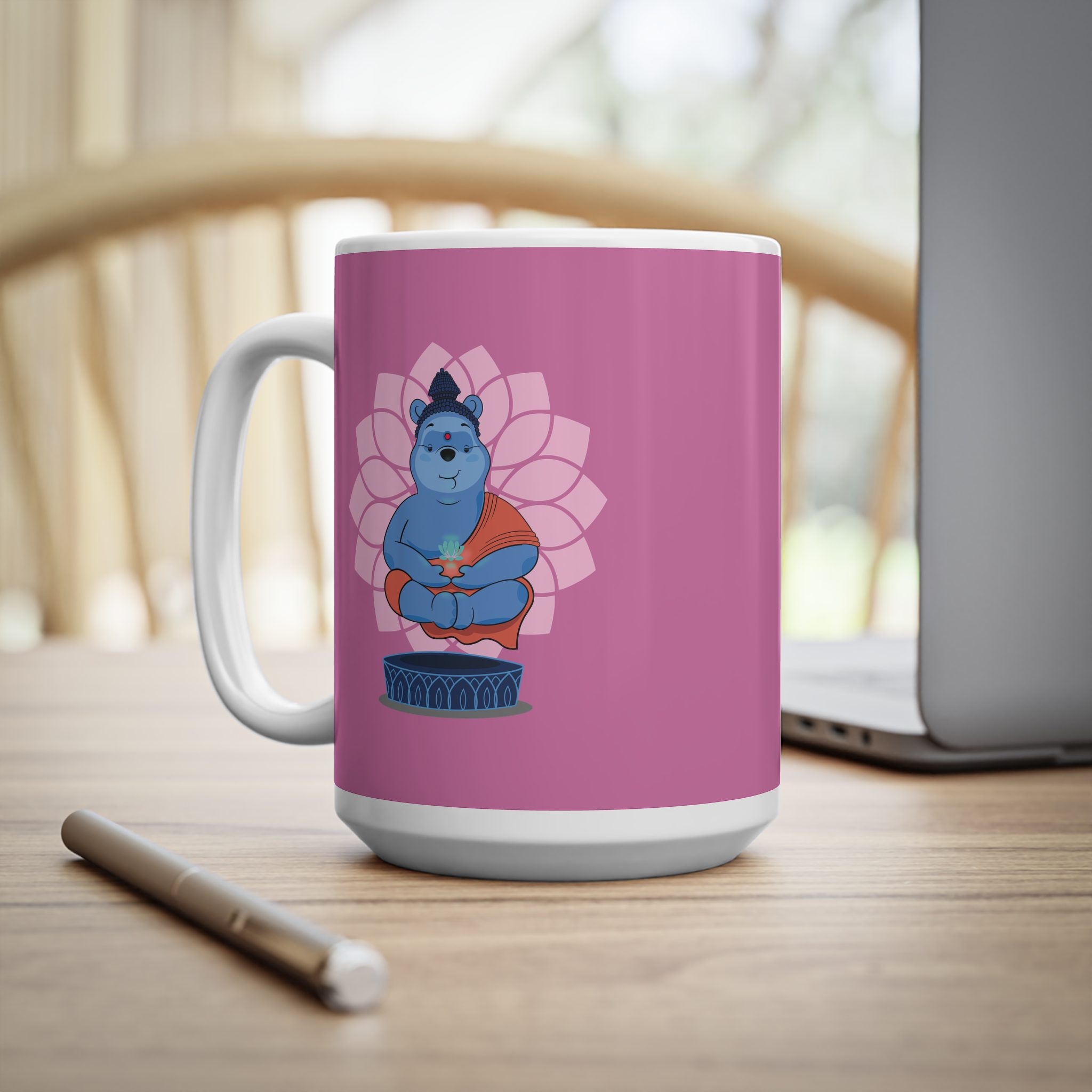 This coffee cup features a Storybook Bear Character portrayed in a calm, centered meditation pose. The illustration focuses on stillness, balance, and gentle presence, creating a peaceful visual moment designed to slow things down and invite quiet reflection.