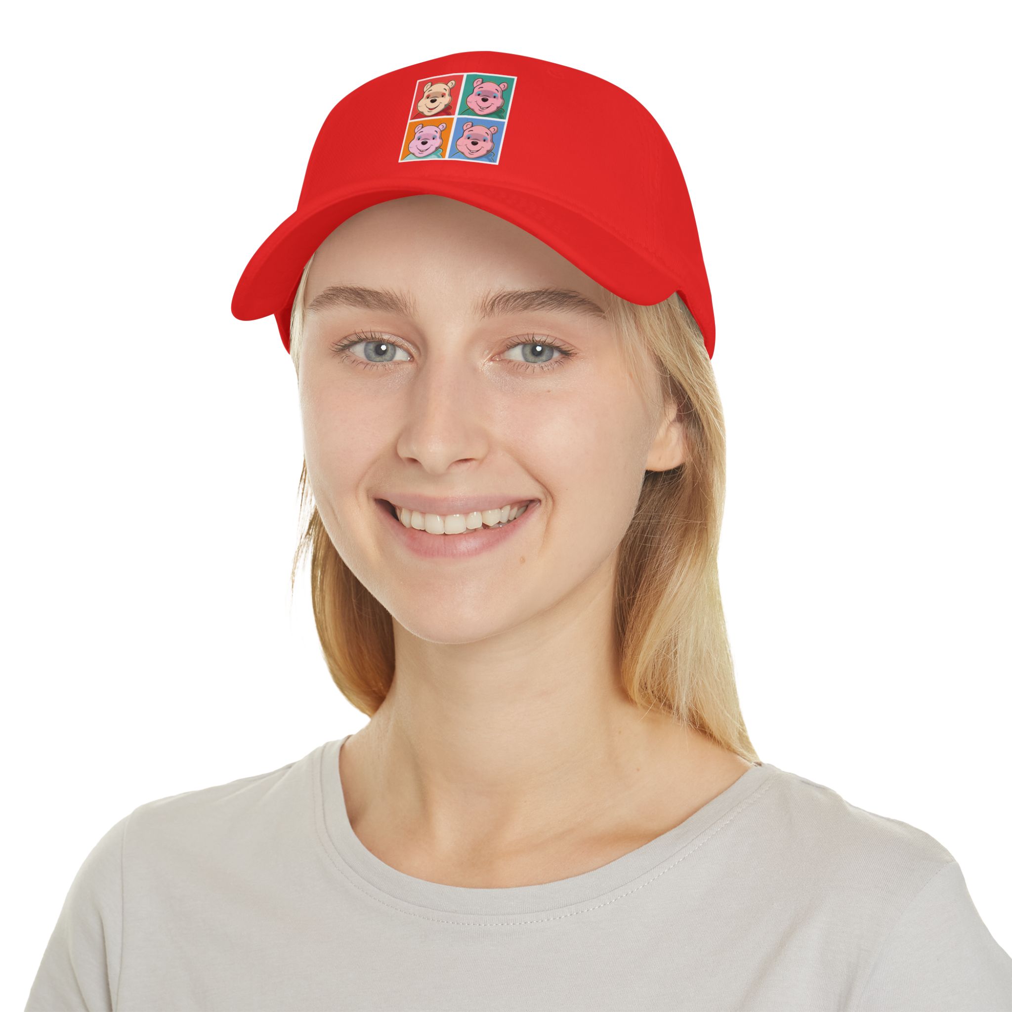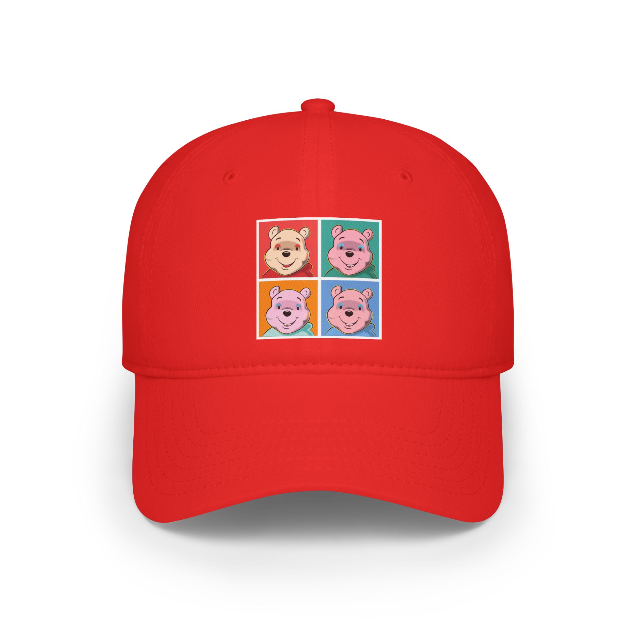 This cap presents a bold pop-art reinterpretation where a Storybook Bear Character is transformed through vibrant color blocks and repeated graphic forms. Inspired by commercial art aesthetics, the design turns a soft, familiar character into a striking visual statement.