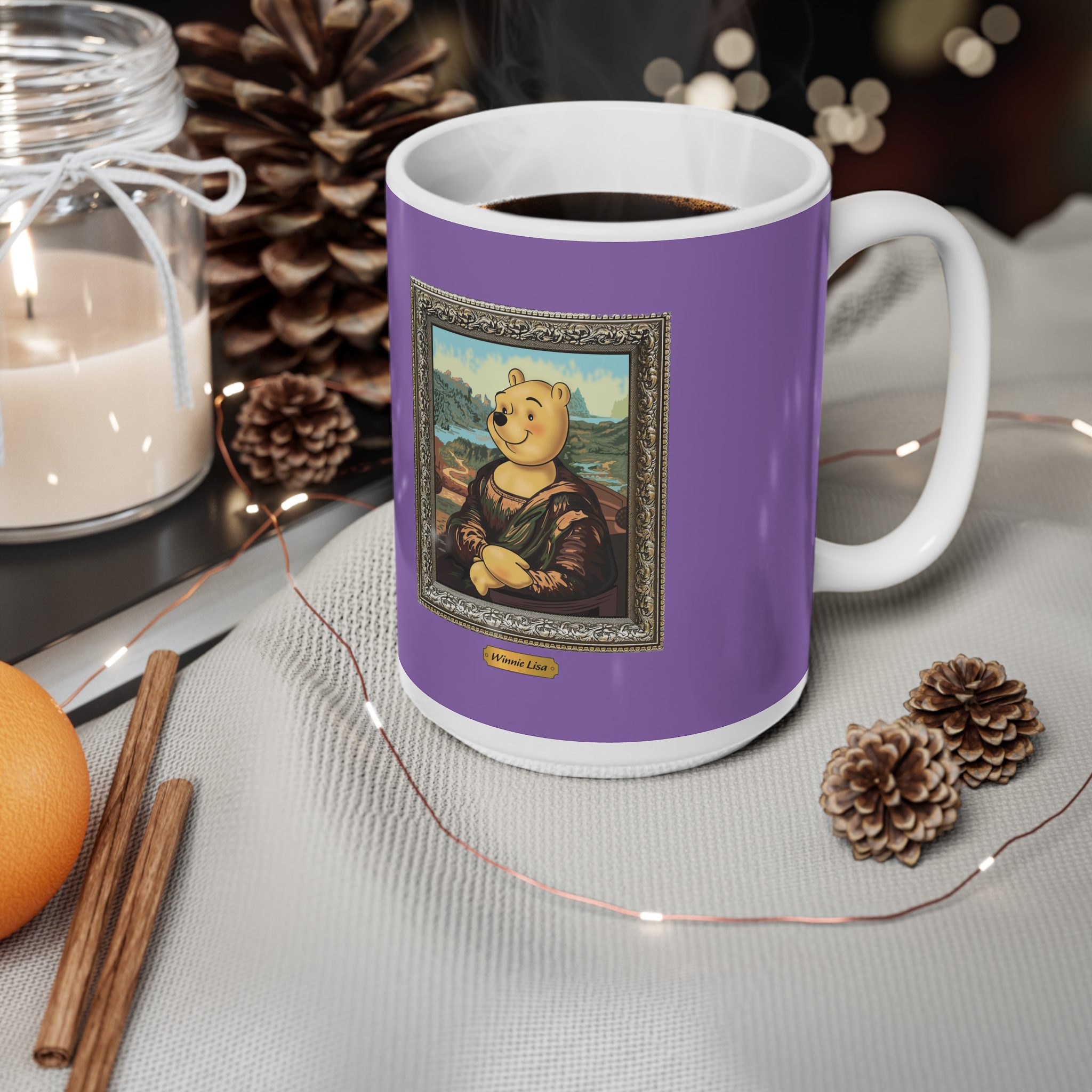 This cup presents a gentle Renaissance-inspired reinterpretation where a Storybook Bear Character appears within a classic portrait composition. The illustration blends calm elegance with soft humor, turning a timeless artistic image into a warm and approachable visual story.