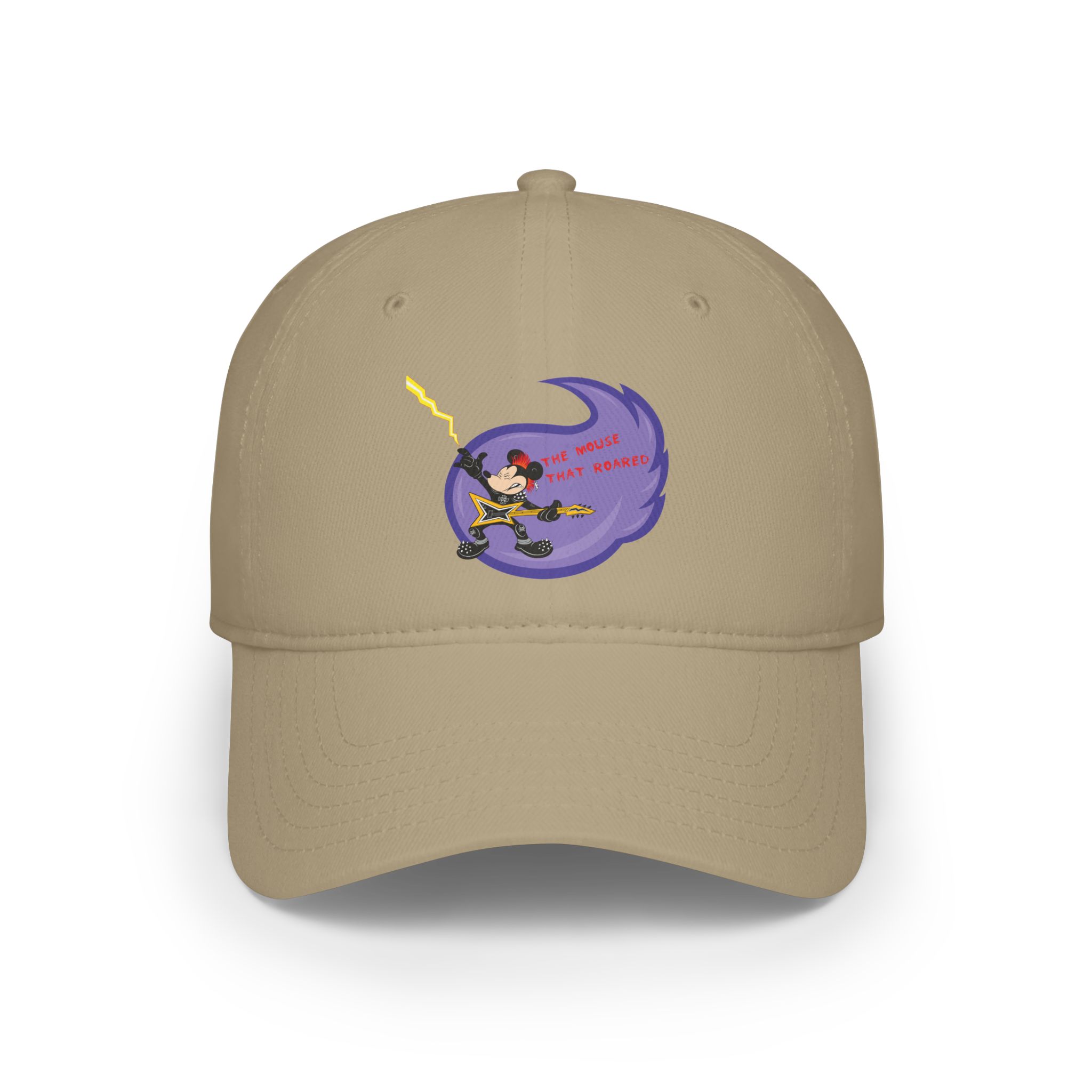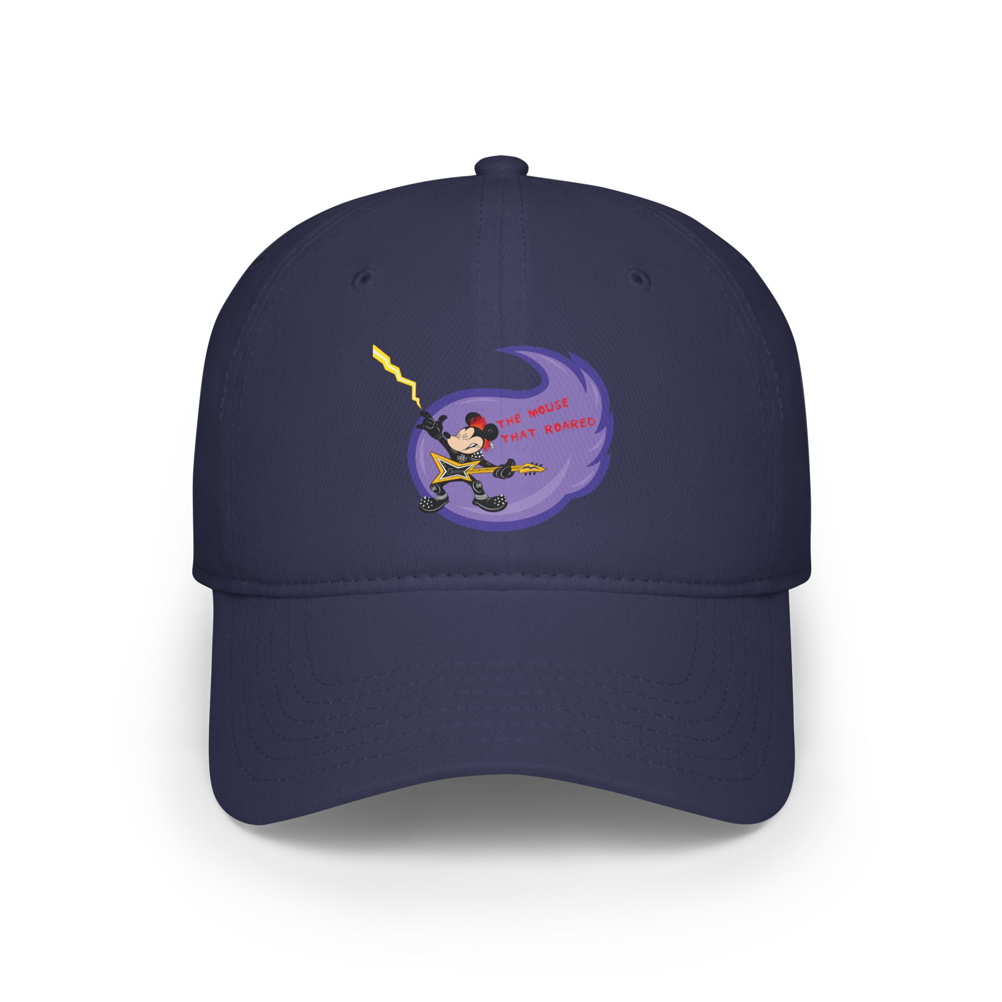This cap unleashes raw energy with a rebellious rock-inspired scene featuring a Vintage Cartoon Mouse in full heavy metal mode. Electric guitar in hand, dynamic motion, and charged atmosphere turn the illustration into a visual anthem of attitude and sound.