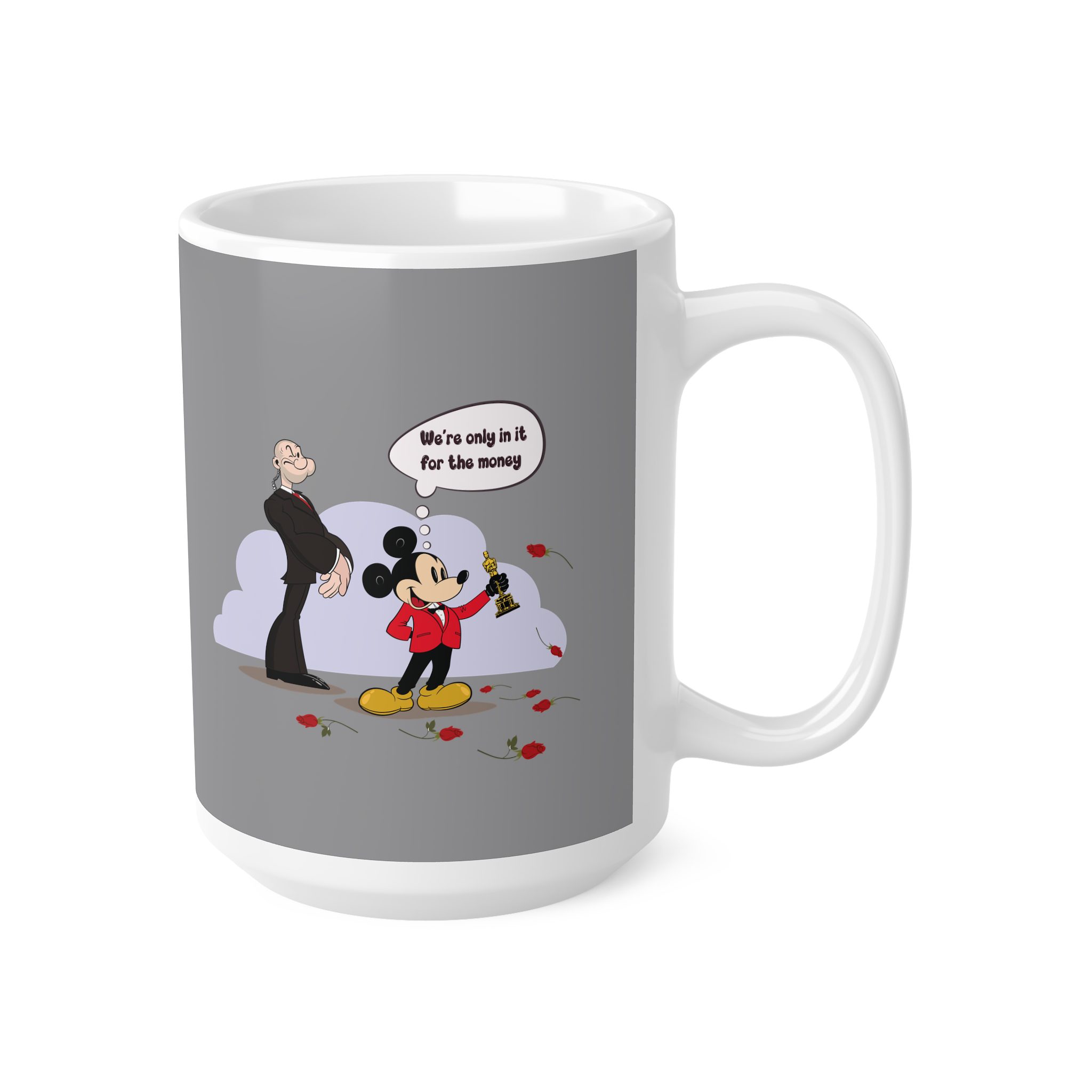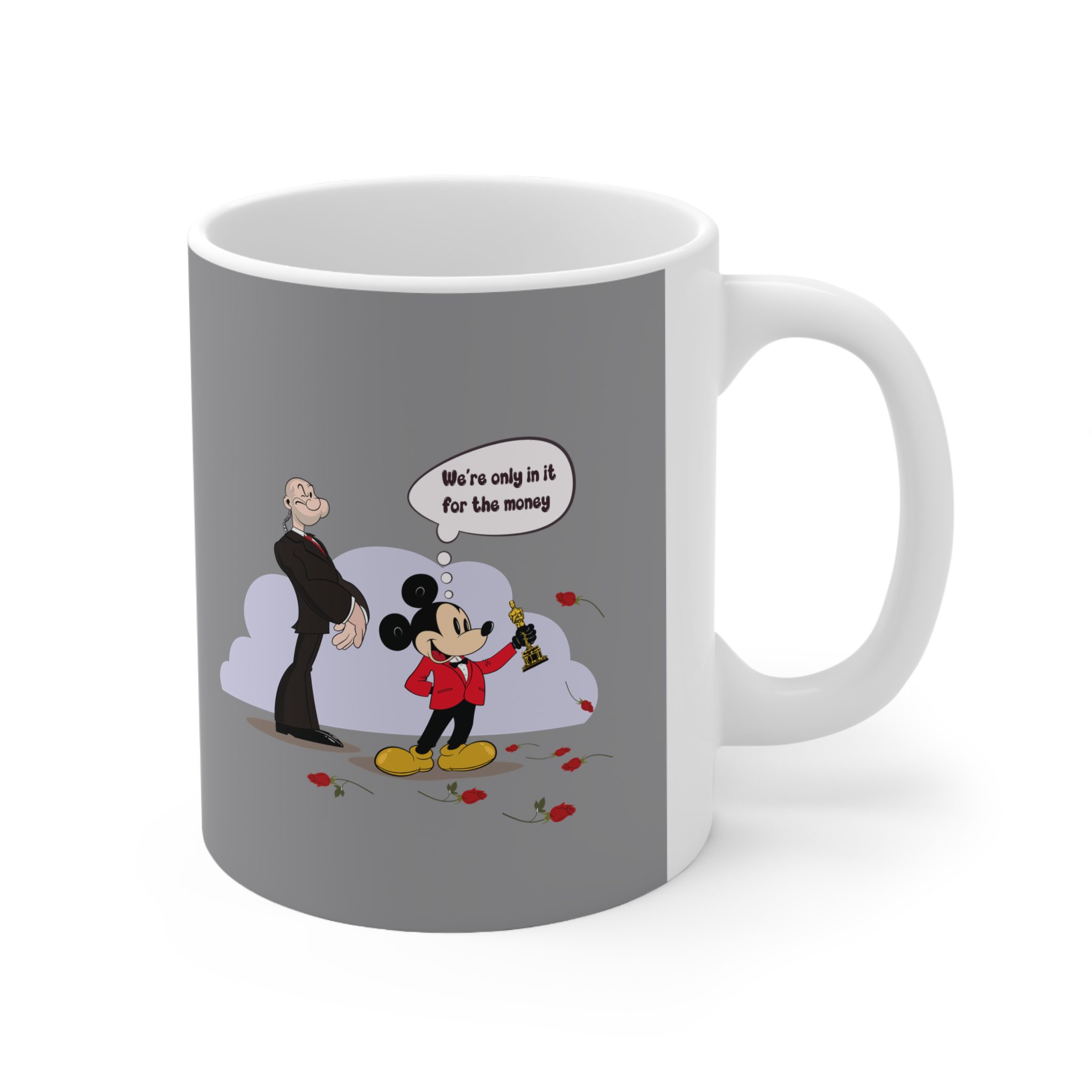 This cup presents a satirical red-carpet scene where a Vintage Cartoon Mouse takes center stage as a celebrated star, while a Retro Comic Sailor Character stands nearby as a vigilant guard. The illustration playfully exaggerates fame, spotlight culture, and over-the-top glamour.